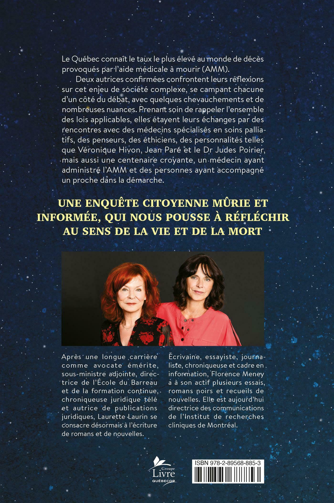 se campant chacune d'un côté du débat, avec quelques chevauchements et de nombreuses nuances. Prenant soin de rappeler l'ensemble des lois applicables, elles étayent leurs échanges par des rencontres avec des médecins spécialisés en soins palliatifs, des penseurs, des éthiciens, des personnalités telles que Véronique Hivon, Jean Paré et le Dr Judes Poirier,
