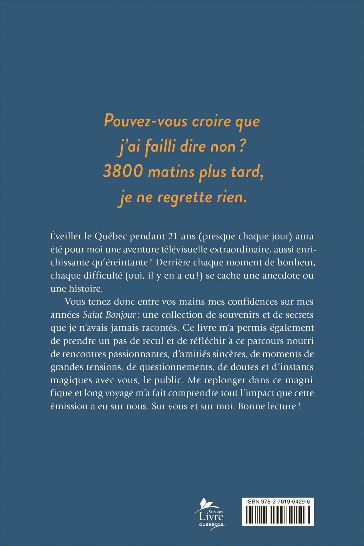 Éveiller le Québec pendant 21 ans (presque chaque jour) aura été pour moi une aventure télévisuelle extraordinaire, aussi enrichissante qu'éreintante! Derrière chaque moment de bonheur, chaque difficulté (oui, il y en a eu !) se cache une anecdote ou une histoire.