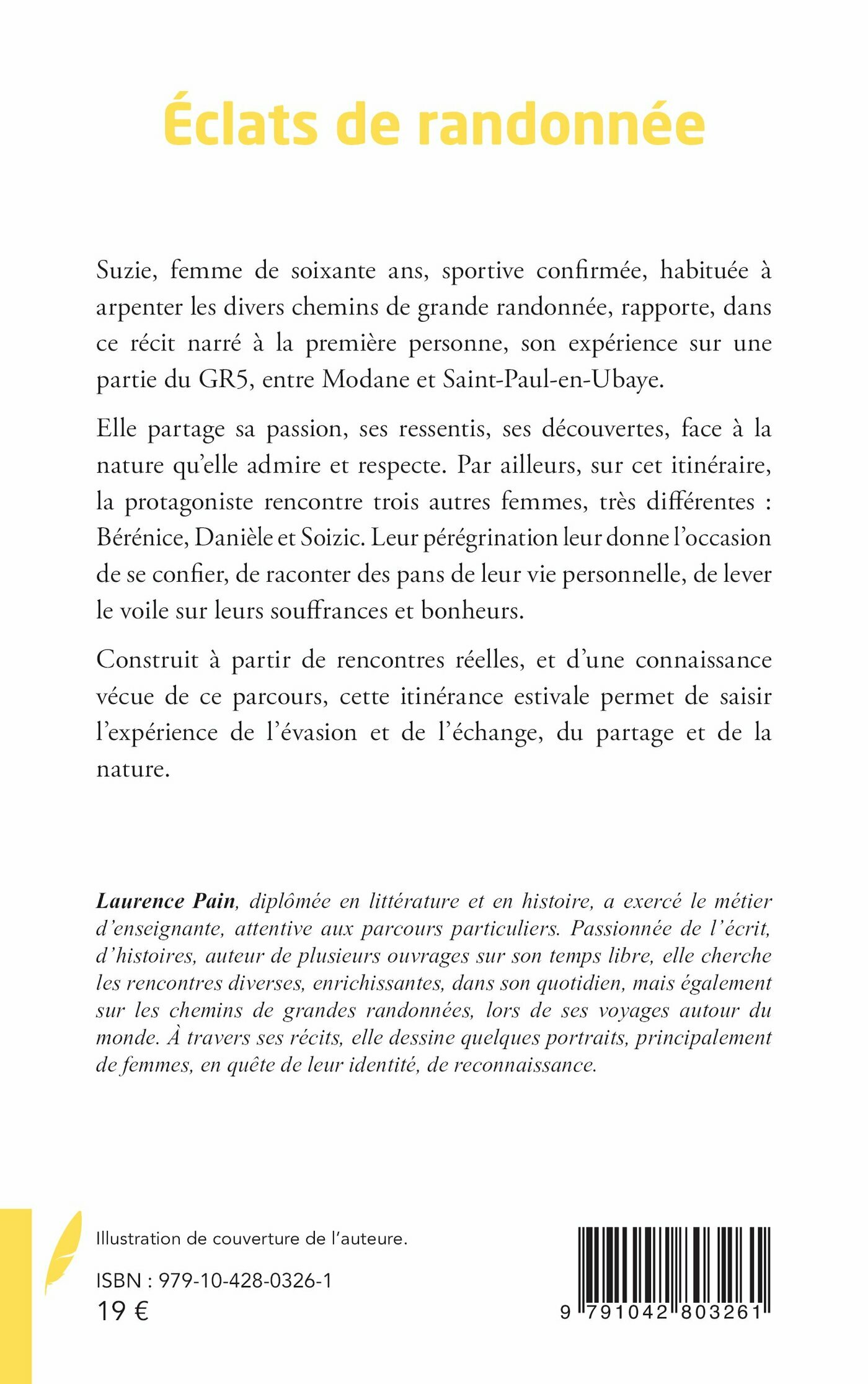Suzie, femme de soixante ans, sportive confirmée, habituée à arpenter les divers chemins de grande randonnée, rapporte, dans ce récit narré à la première personne, son expérience sur une partie du GR5, entre Modane et Saint-Paul-en-Ubaye.