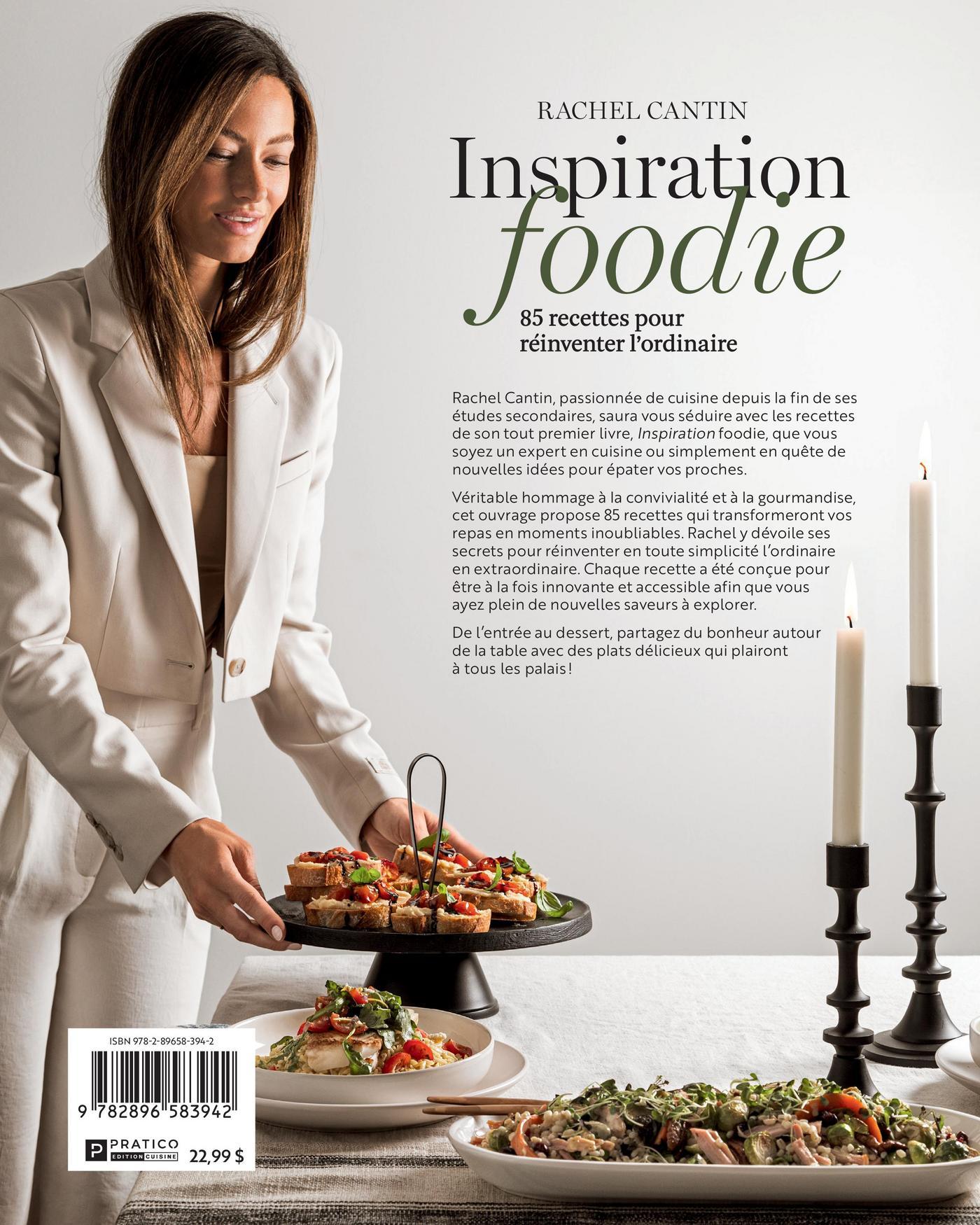 Rachel Cantin, passionnée de cuisine depuis la fin de ses études secondaires, saura vous séduire avec les recettes de son tout premier livre, Inspiration foodie, que vous soyez un expert en cuisine ou simplement en quête de nouvelles idées pour épater vos proches. Véritable hommage à la convivialité et à la gourmandise, cet ouvrage propose 85 recettes qui transformeront vos repas en moments inoubliables. Rachel y dévoile ses secrets pour réinventer en toute simplicité l’ordinaire en extraordinaire. Chaque recette a été conçue pour être à la fois innovante et accessible afin que vous ayez plein de nouvelles saveurs à explorer. De l’entrée au dessert, partagez du bonheur autour de la table avec des plats délicieux qui plairont à tous les palais !