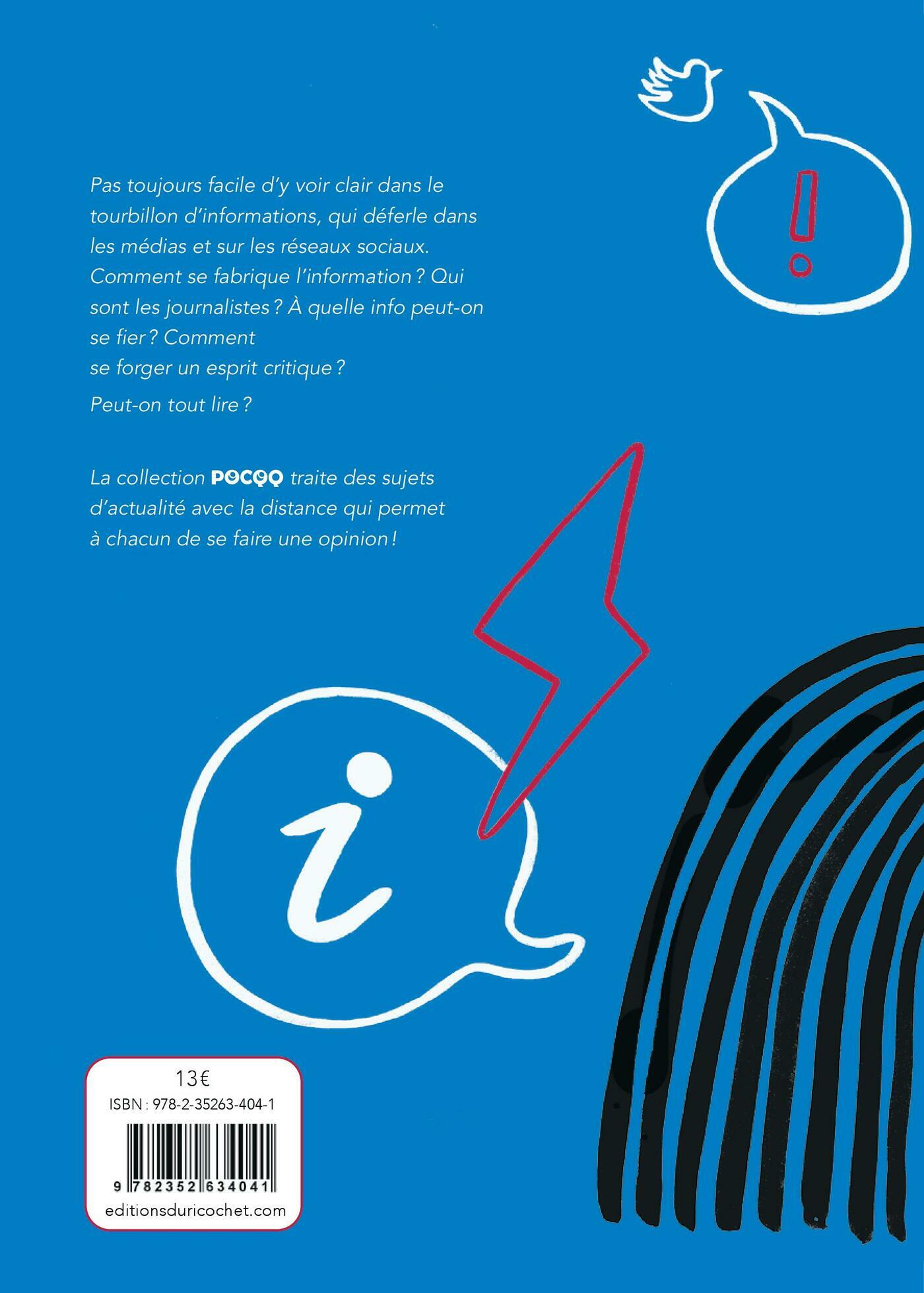 Aujourd'hui, l'information est partout : chaînes d'information en continu, notifications, réseaux sociaux… Mais comment faire le tri entre le vrai, l'intox, l'essentiel ? Comment travaillent les journalistes ? Sont-ils libres d'aborder tous les sujets ? Sont-ils objectifs ?Cela fait beaucoup de questions ! Sophie Eustache a mené l'enquête pour aider le lecteur à prendre le recul nécessaire face à la masse d'informations que nous recevons chaque jour.Les sujets d’actualité abordés dans la collection POCQQ concernent surtout les adolescents, les citoyens de demain. C'est leur avenir et leurs futurs modes de vie qui se jouent ! Ils y trouveront des informations essentielles, vérifiées, et actualisées afin de se forger leur opinion.