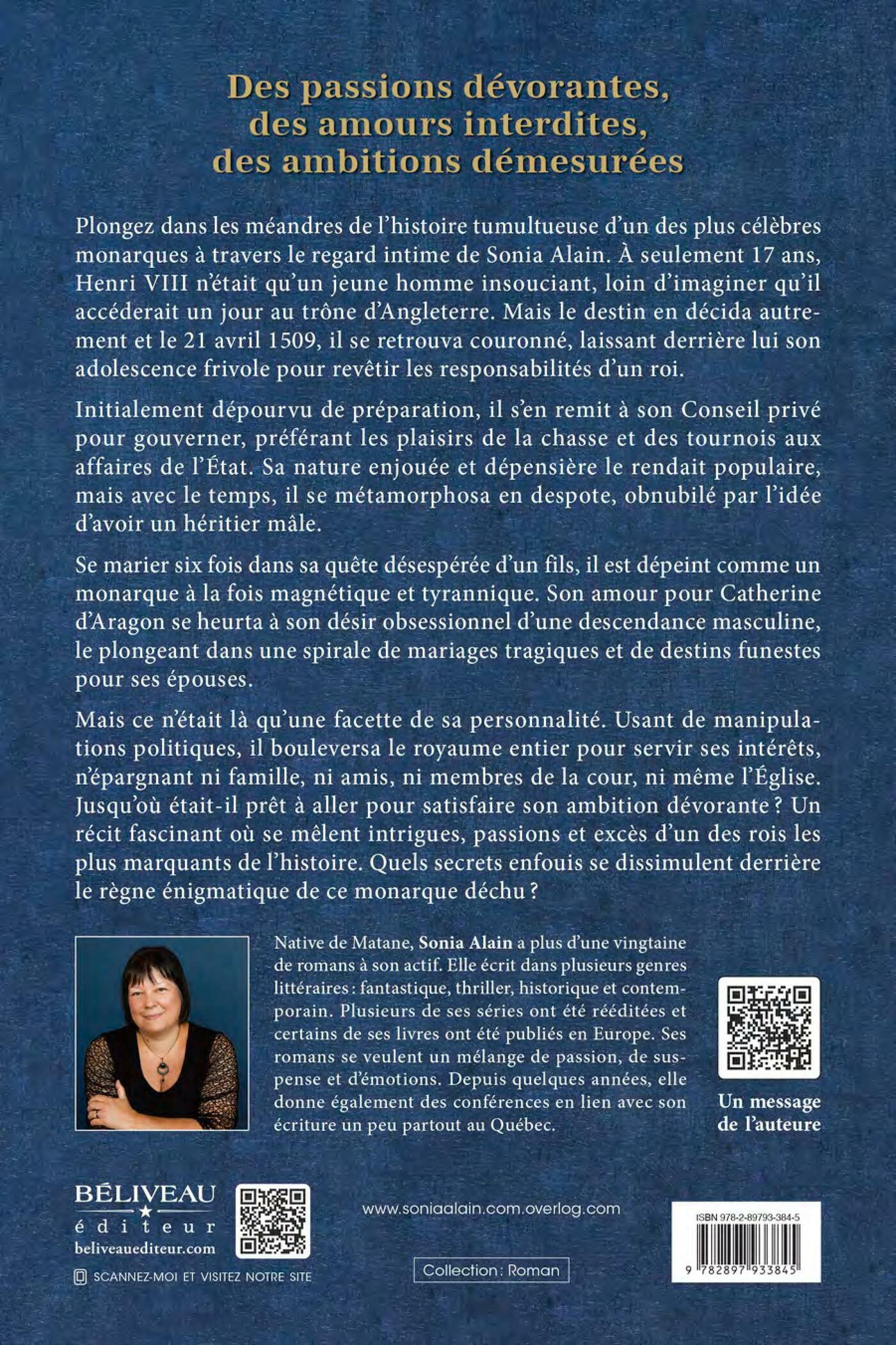 Plongez dans les méandres de l’histoire tumultueuse d’un des plus célèbresmonarques à travers le regard intime de Sonia Alain. À seulement 17 ans, iln’était qu’un jeune homme insouciant, loin d’imaginer qu’il accéderait un jourau trône d’Angleterre. Mais le destin en décida autrement, et le 21 avril 1509, ilse retrouva couronné, laissant derrière lui son adolescence frivole pour revêtirles responsabilités d’un roi.Initialement dépourvu de préparation, il s’en remit à son Conseil privé pourgouverner, préférant les plaisirs de la chasse et des tournois aux affaires de l’État.Sa nature enjouée et dépensière le rendait populaire, mais avec le temps, il semétamorphosa en despote, obnubilé par l’idée d’avoir un héritier mâle.Se marier six fois dans sa quête désespérée d’un fils, il est dépeint comme unmonarque à la fois magnétique et tyrannique. Son amour pour sa premièreépouse se heurta à son désir obsessionnel d’une descendance masculine, leplongeant dans une spirale de mariages tragiques et de destins funestes pourses épouses.Mais ce n’était là qu’une facette de sa personnalité. Usant de manipulationspolitiques, il bouleversa le royaume entier pour servir ses intérêts, n’épargnantni famille, ni amis, ni membres de la cour, ni même l’Église. Jusqu’où était-il prêtà aller pour satisfaire son ambition dévorante ? Un récit fascinant, où se mêlentintrigues, passions et excès d’un des rois les plus marquants de l’histoire. Quelssecrets enfouis se dissimulent derrière le règne énigmatique de ce monarquedéchu ?