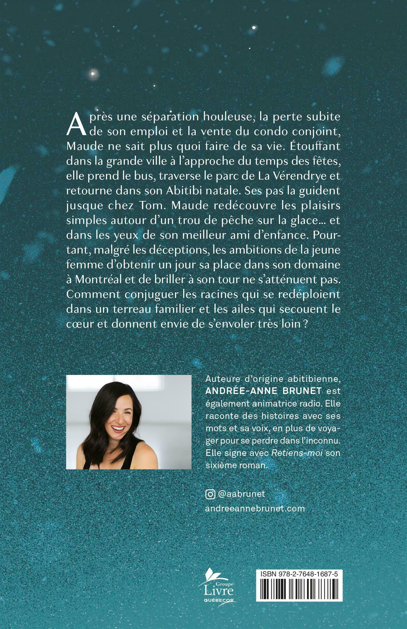 Après une séparation houleuse, la perte subite de son emploi et la vente du condo conjoint, Maude ne sait plus quoi faire de sa vie. Étouffant dans la grande ville à l'approche du temps des fêtes, elle prend le bus, traverse le parc de La Vérendrye et retourne dans son Abitibi natale. Ses pas la guident jusque chez Tom. Maude redécouvre les plaisirs simples autour d'un trou de pêche sur la glace… et dans les yeux de son meilleur ami d'enfance. Pourtant, malgré les déceptions, les ambitions de la jeune femme d'obtenir un jour sa place dans son domaine à Montréal et de briller à son tour ne s'atténuent pas. Comment conjuguer les racines qui se redéploient dans un terreau familier et les ailes qui secouent le coeur et donnent envie de s'envoler très loin ?