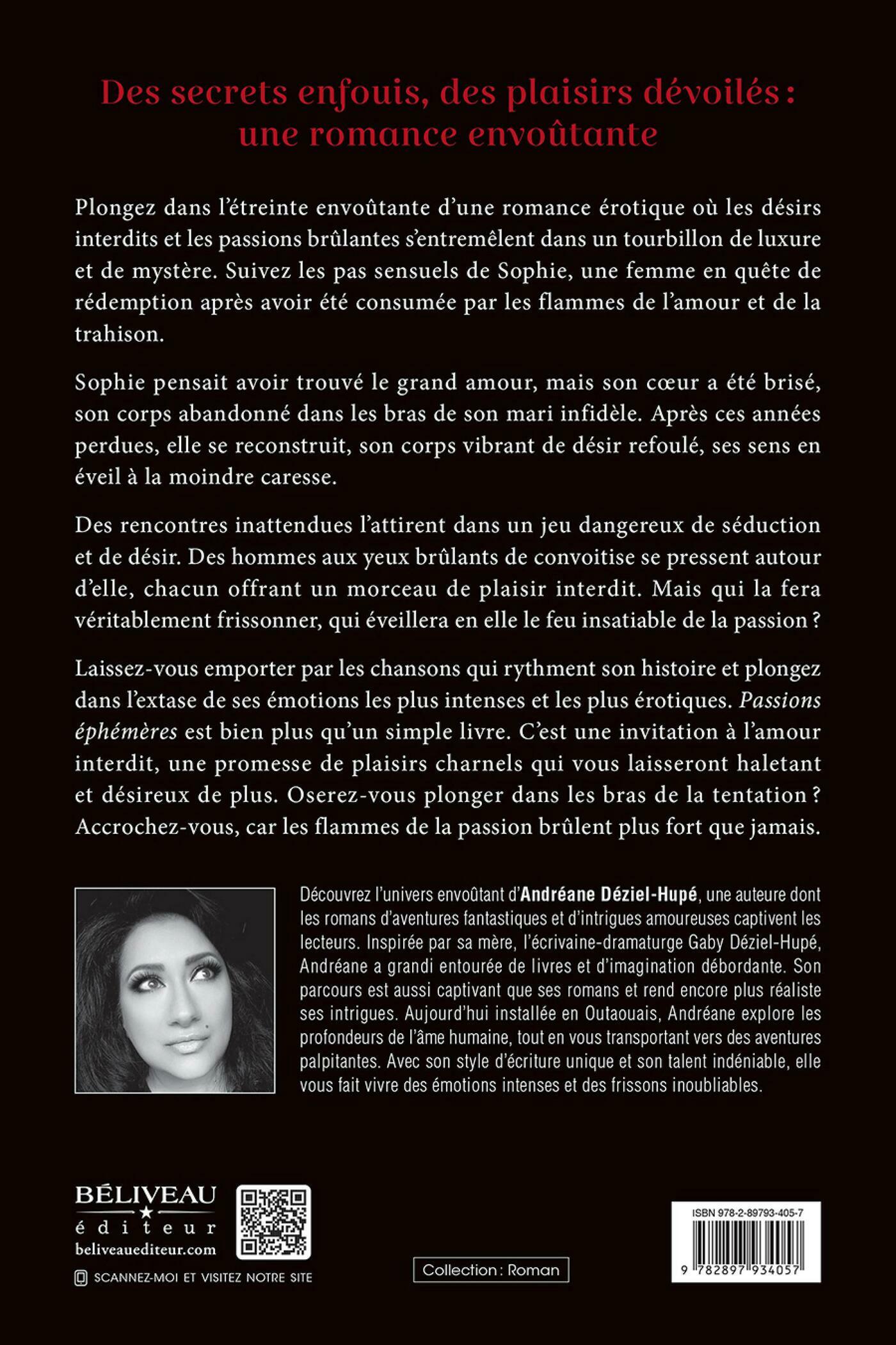 Plongez dans l’étreinte envoûtante d’une romance érotique où les désirs interditset les passions brûlantes s’entremêlent dans un tourbillon de luxure et de mystère.Suivez les pas sensuels de Sophie, une femme en quête de rédemption aprèsavoir été consumée par les flammes de l’amour et de la trahison.Sophie pensait avoir trouvé le grand amour, mais son coeur a été brisé, son corpsabandonné dans les bras de son mari infidèle. Après ces années perdues, ellese reconstruit, son corps vibrant de désir refoulé, ses sens en éveil à la moindrecaresse.Des rencontres inattendues l’attirent dans un jeu dangereux de séduction etde désir. Des hommes aux yeux brûlants de convoitise se pressent autour d’elle,chacun offrant un morceau de plaisir interdit. Mais qui la fera véritablementfrissonner, qui éveillera en elle le feu insatiable de la passion ?Laissez-vous emporter par les chansons qui rythment son histoire et plongezdans l’extase de ses émotions les plus intenses et les plus érotiques. Passionséphémères est bien plus qu’un simple livre. C’est une invitation à l’amour interdit,une promesse de plaisirs charnels qui vous laisseront haletant et désireux deplus. Oserez-vous plonger dans les bras de la tentation ? Accrochez-vous, car lesflammes de la passion brûlent plus fort que jamais.
