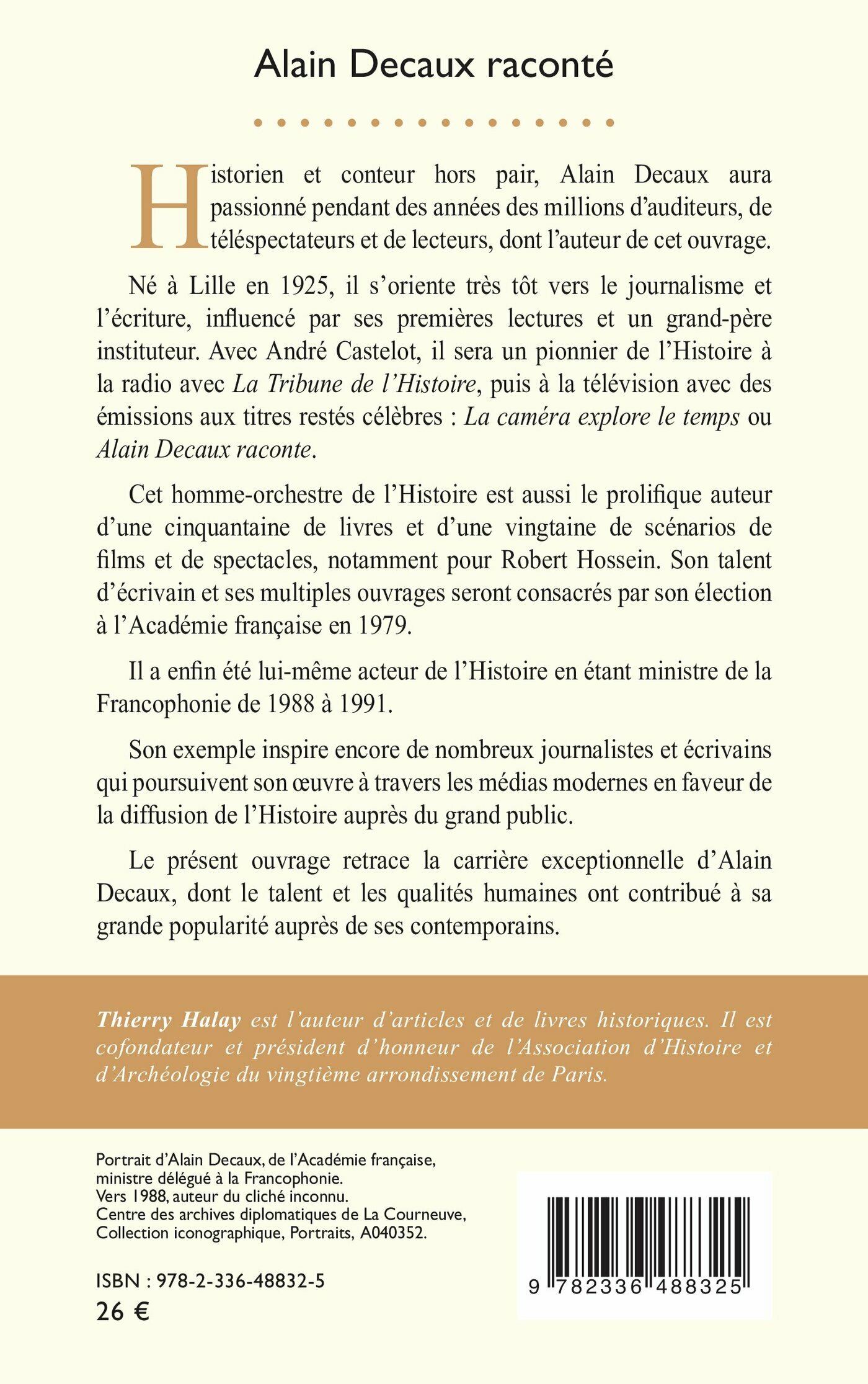 Le présent ouvrage retrace la carrière exceptionnelle d’Alain Decaux, dont le talent et les qualités humaines ont contribué à sa grande popularité auprès de ses contemporains.