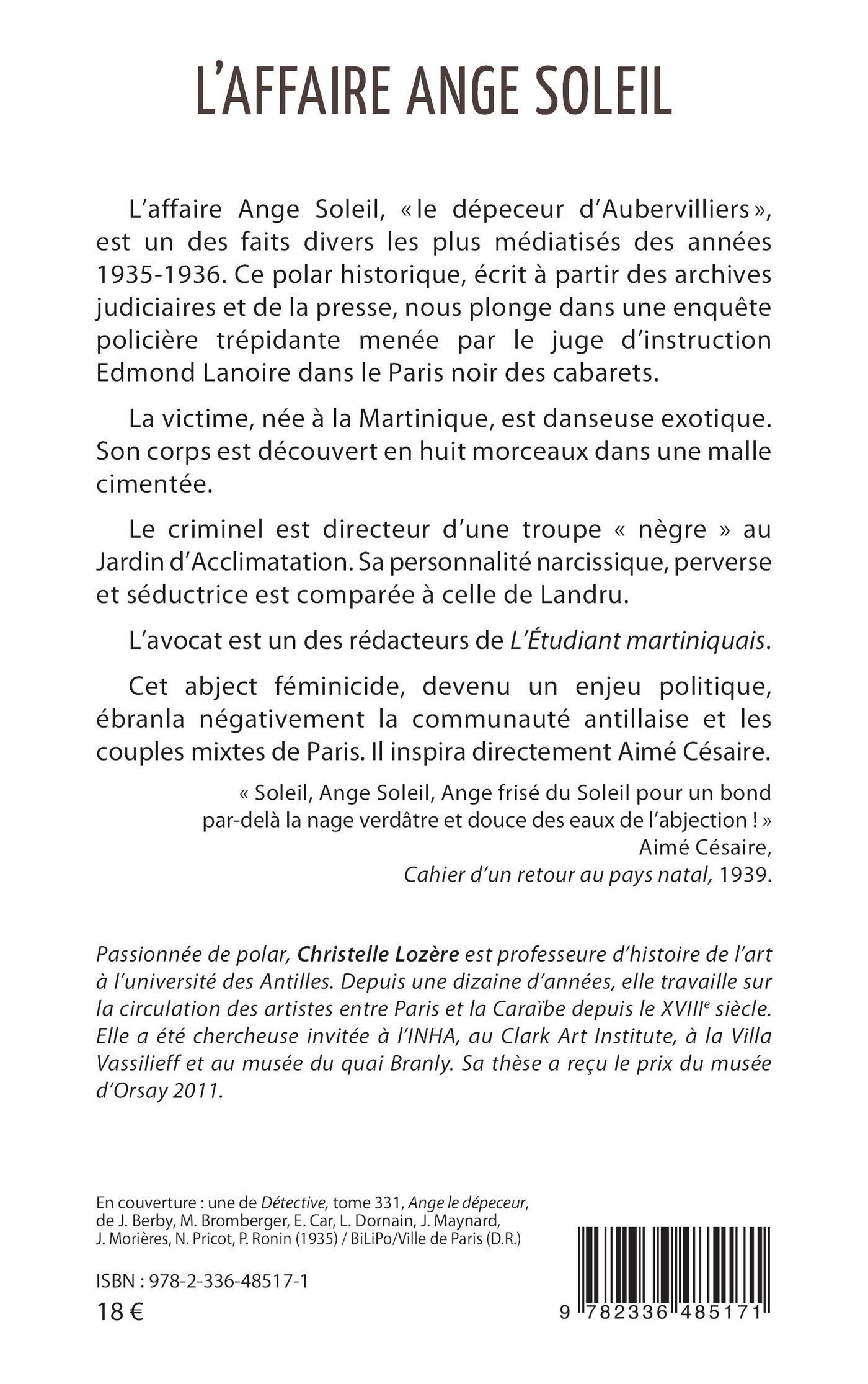 L’affaire Ange Soleil, « le dépeceur d’Aubervilliers », est un des faits divers les plus médiatisés des années 1935-1936. Ce polar historique, écrit à partir des archives judiciaires et de la presse, nous plonge dans une enquête policière trépidante menée par le juge d’instruction Edmond Lanoire dans le Paris noir des cabarets.