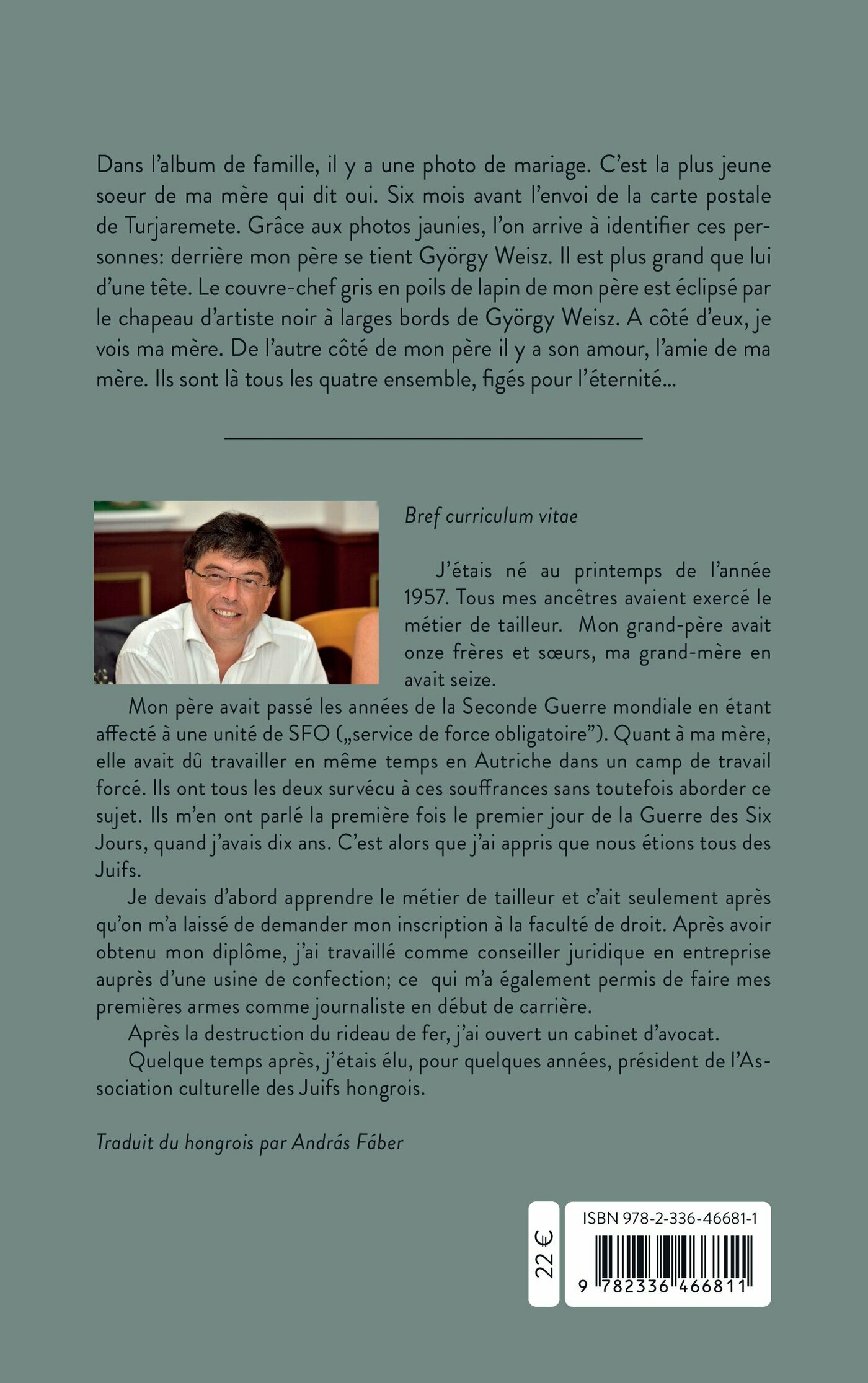 Je suis à leur recherche, à la recherche de György Weisz. Il aurait pu devenir mon père puisqu’il m'a donné déjà son nom. Plus précisément, ce n’était pas lui, mais ma mère qui me l’a transmis. Elle avait pris le nom pour elle, pour le garder soigneusement afin de me l’offrir le moment venu. Comme si j’avais le droit de le porter.