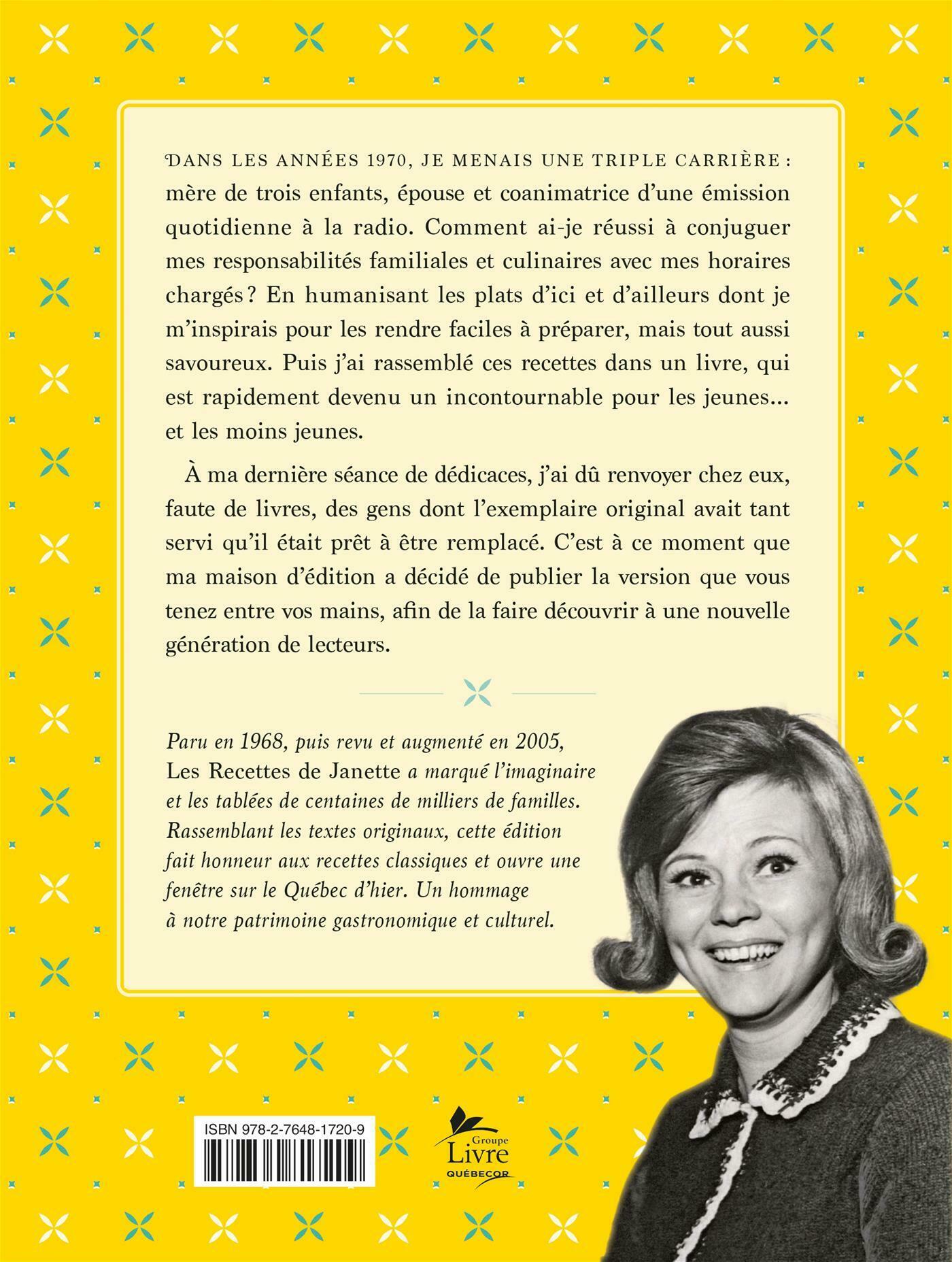 Paru en 1968, puis revu et augmenté en 2005, Les Recettes de Janette a marqué l'imaginaire et les tablées de centaines de milliers de familles. Rassemblant les textes originaux, cette édition fait honneur aux recettes classiques et ouvre une fenêtre sur le Québec d'hier. Un hommage à notre patrimoine gastronomique et culturel.