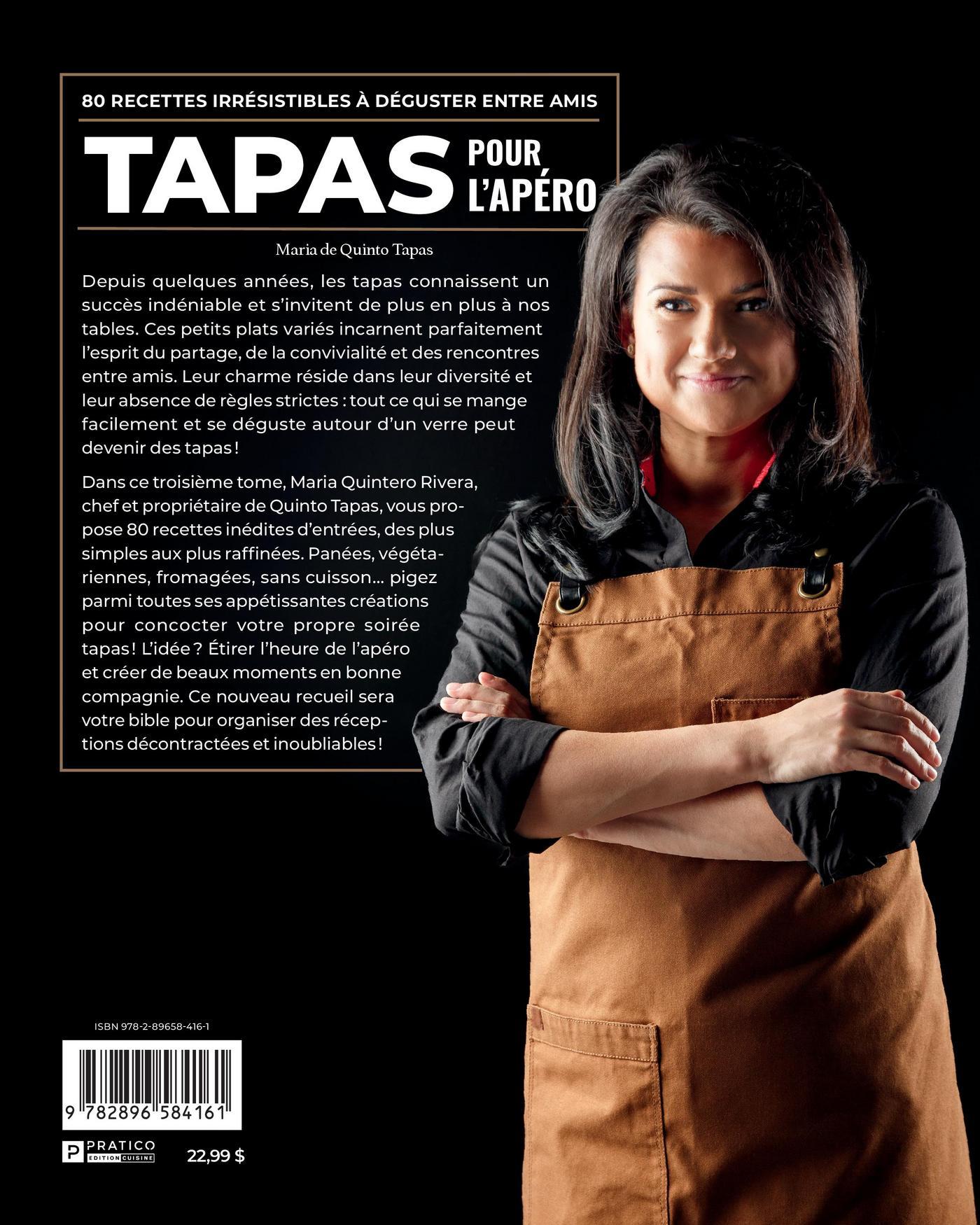 Depuis quelques années, les tapas connaissent un succès indéniable et s’invitent de plus en plus à nos tables. Ces petits plats variés incarnent parfaitement l’esprit du partage, de la convivialité et des rencontres entre amis. Leur charme réside dans leur diversité et leur absence de règles strictes : tout ce qui se mange facilement et se déguste autour d’un verre peut devenir des tapas ! Dans ce troisième tome, Maria Quintero Rivera, chef et propriétaire de Quinto Tapas, vous propose 80 recettes inédites d’entrées, des plus simples aux plus raffinées. Panées, végétariennes, fromagées, sans cuisson pigez parmi toutes ses appétissantes créations pour concocter votre propre soirée tapas ! L’idée ? Étirer l’heure de l’apéro et créer de beaux moments en bonne compagnie. Ce nouveau recueil sera votre bible pour organiser des réceptions décontractées et inoubliables !