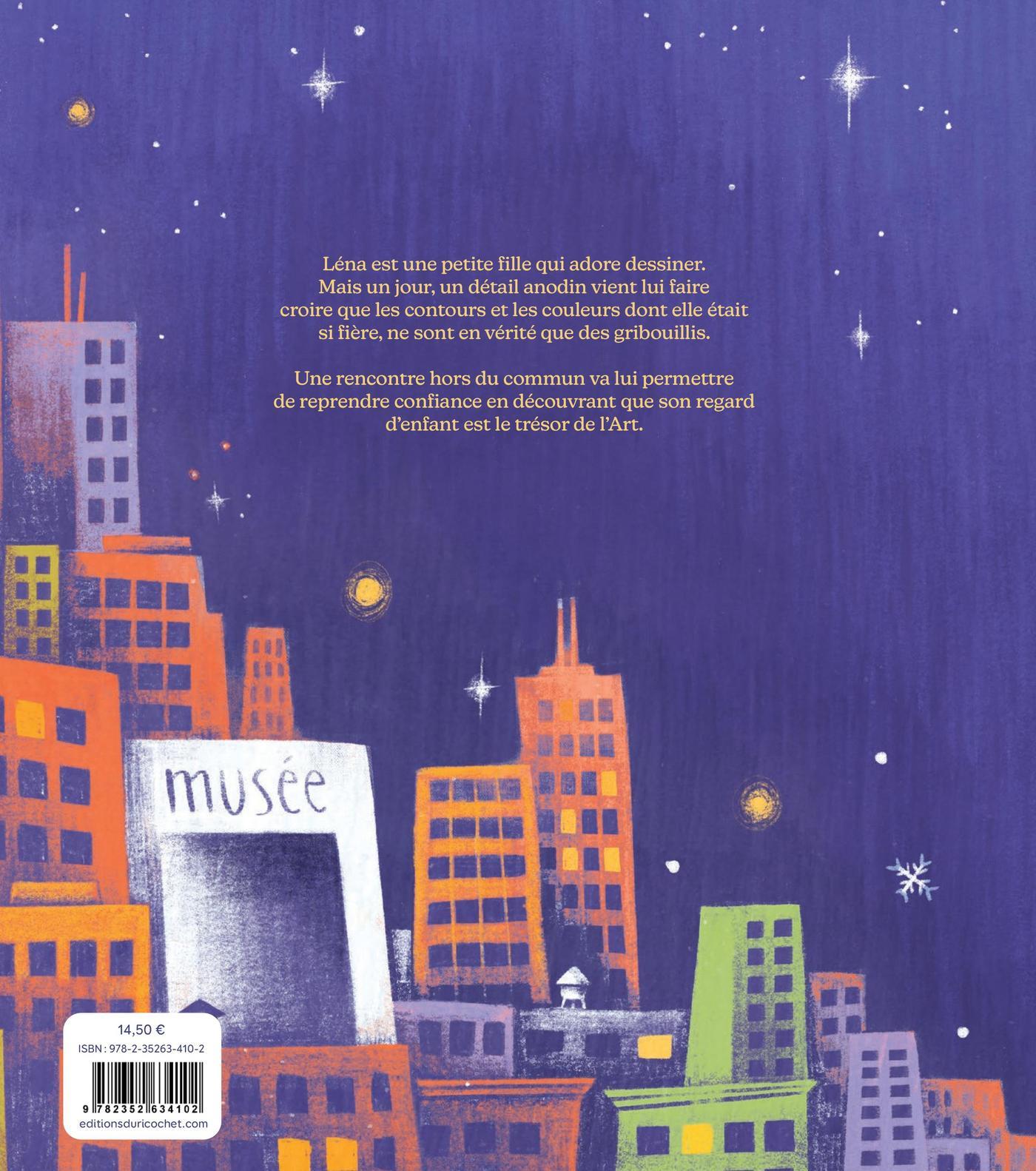 Depuis toujours, Léna adore dessiner. Mais un jour, elle regarde l'un de ses dessins d'un mauvais œil et perd confiance en elle. Comparé à d'autres, elle le trouve bien trop enfantin ! Déçue, elle déchire son dessin et s'en va se coucher.Dans la nuit cependant, traversant la nuit noire comme une ombre, Méga rend visite à Léna. À son approche, le cœur de Léna s'apaise et elle accepte de la suivre dans un voyage incroyable parmi les étoiles et les œuvres d'art. Méga lui prouve, à travers l'art, que chaque regard est unique et que le sien est beau, parce qu'il est innocent et sincère.Lorsqu'elle se réveille le lendemain matin, sa tante va lui donner la preuve qu'elle a toujours cru en elle !