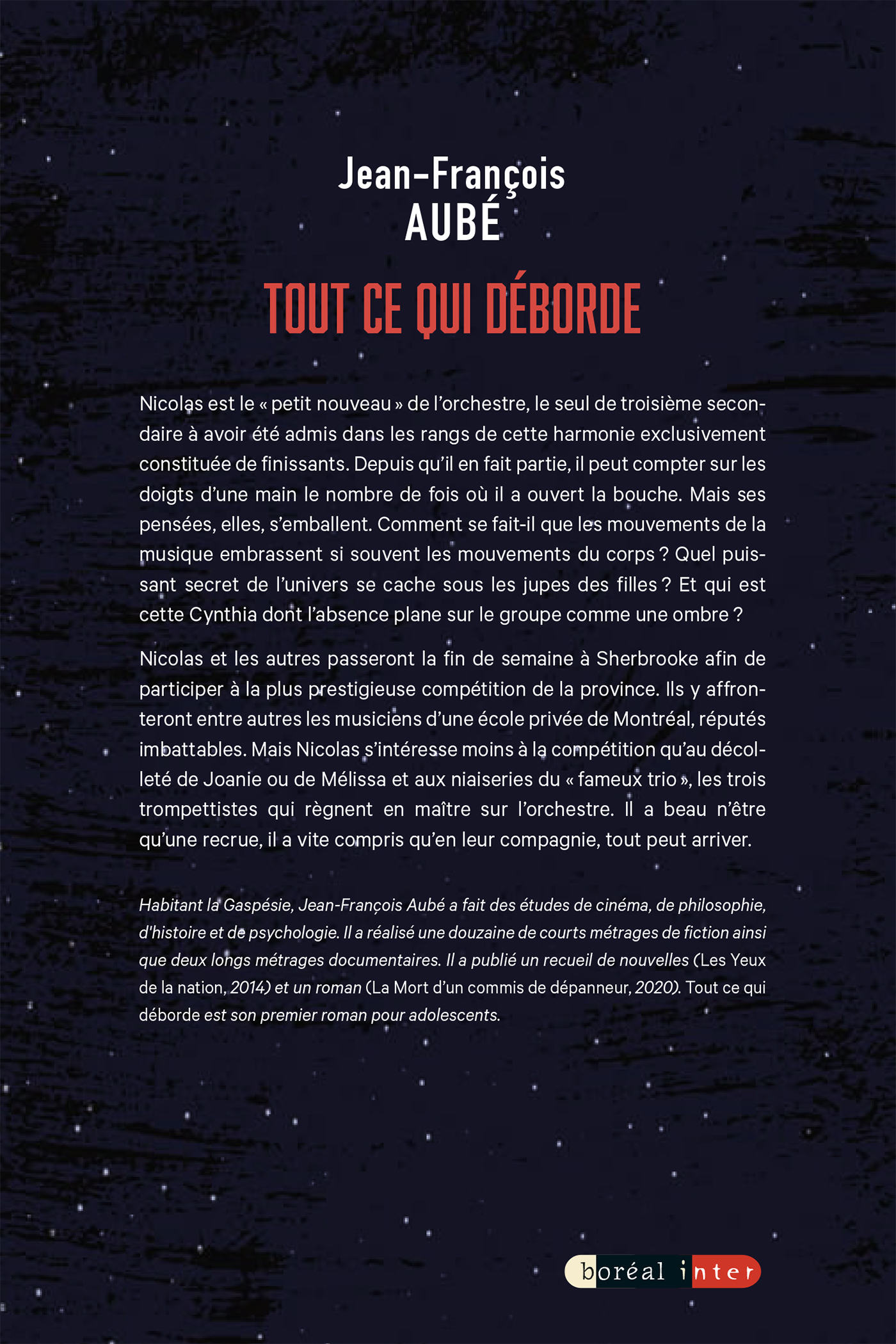 Jean-François Aubé traduit avec justesse et sans gants blancs les débordements de l’adolescence. L’éveil du désir, aussi impérieux qu’intrigant, côtoie les inquiétudes face à un monde qui, de catastrophe naturelle en scandale sexuel, n’augure rien de bon.