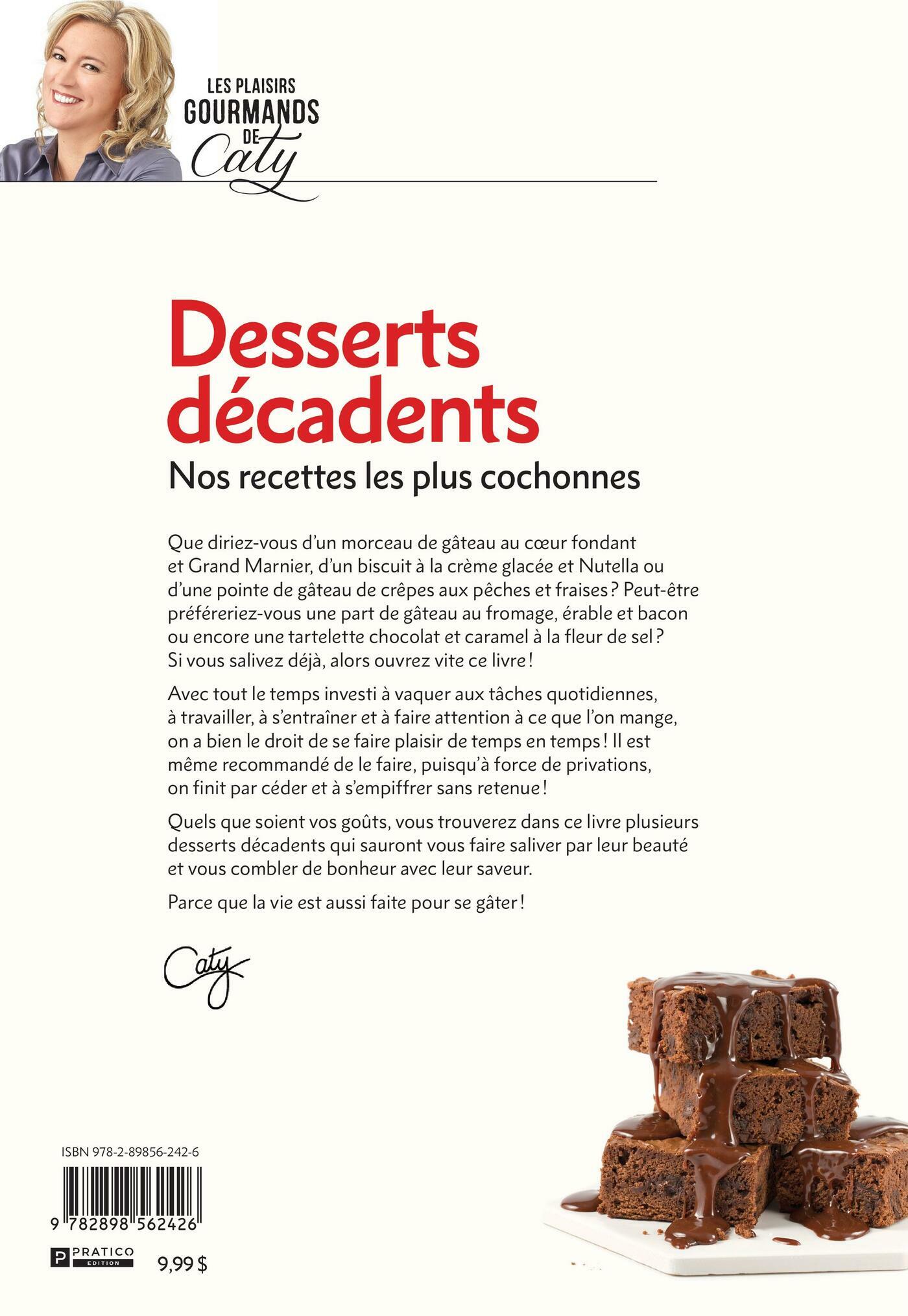 Que diriez-vous d’un morceau de gâteau au coeur fondant et Grand Marnier, d’un biscuit à la crème glacée et Nutella ou d’une pointe de gâteau de crêpes aux pêches et fraises ? Peut-être préféreriez-vous une part de gâteau au fromage, érable et bacon ou encore une tartelette chocolat et caramel à la fl eur de sel ? Si vous salivez déjà, alors ouvrez vite ce livre ! Avec tout le temps investi à vaquer aux tâches quotidiennes, à travailler, à s’entraîner et à faire attention à ce que l’on mange, on a bien le droit de se faire plaisir de temps en temps ! Il est même recommandé de le faire, puisqu’à force de privations, on finit par céder et à s’empiffrer sans retenue ! Quels que soient vos goûts, vous trouverez dans ce livre plusieurs desserts décadents qui sauront vous faire saliver par leur beauté et vous combler de bonheur avec leur saveur.Parce que la vie est aussi faite pour se gâter !
