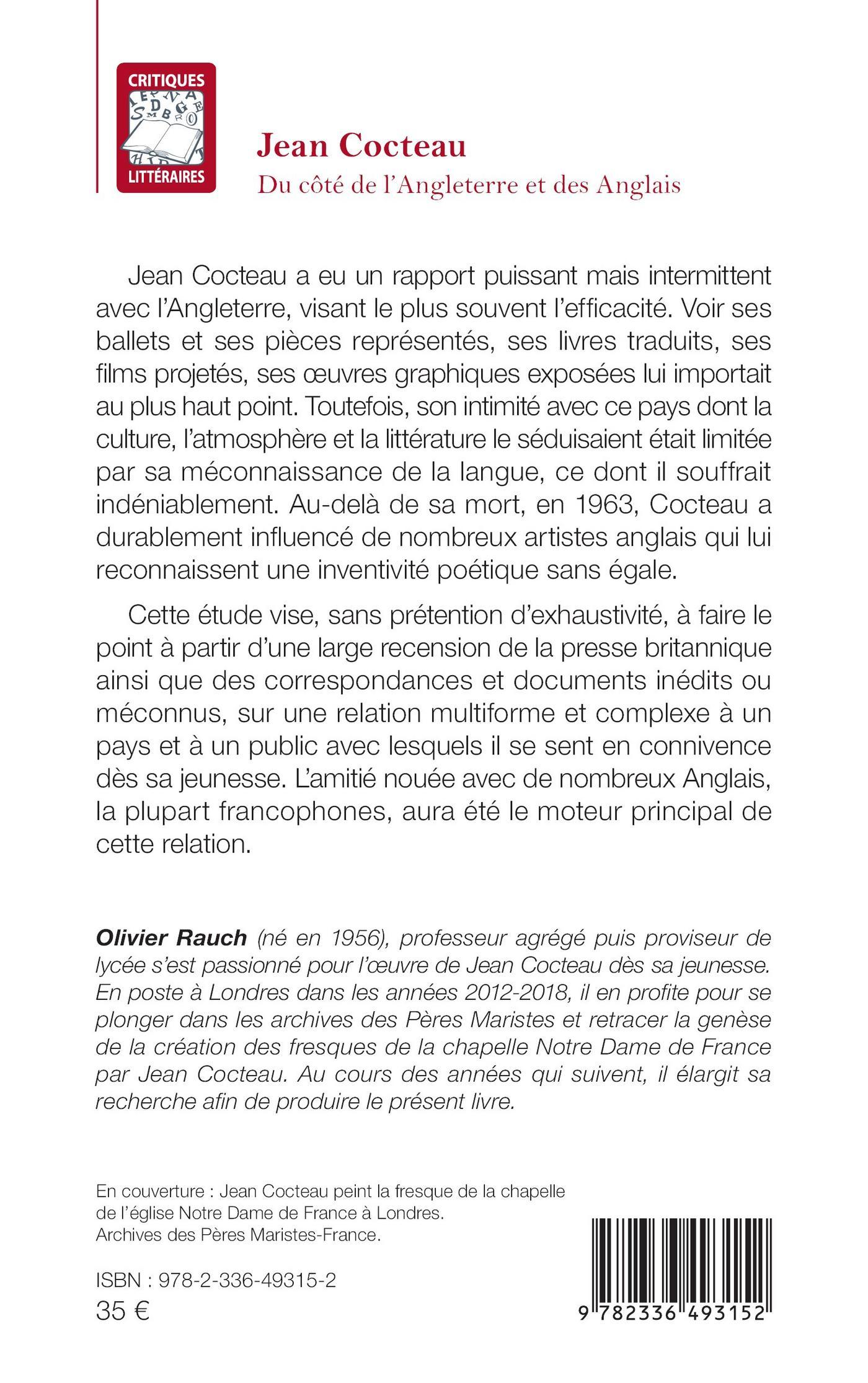 Jean Cocteau a eu un rapport puissant mais intermittent avec l’Angleterre, visant le plus souvent l’efficacité. Voir ses ballets et ses pièces représentés, ses livres traduits, ses films projetés, ses œuvres graphiques exposées lui importait au plus haut point. Toutefois, son intimité avec ce pays dont la culture, l’atmosphère et la littérature le séduisaient était limitée par sa méconnaissance de la langue, ce dont il souffrait indéniablement. Au-delà de sa mort, en 1963, Cocteau a durablement influencé de nombreux artistes anglais qui lui reconnaissent une inventivité poétique sans égale.