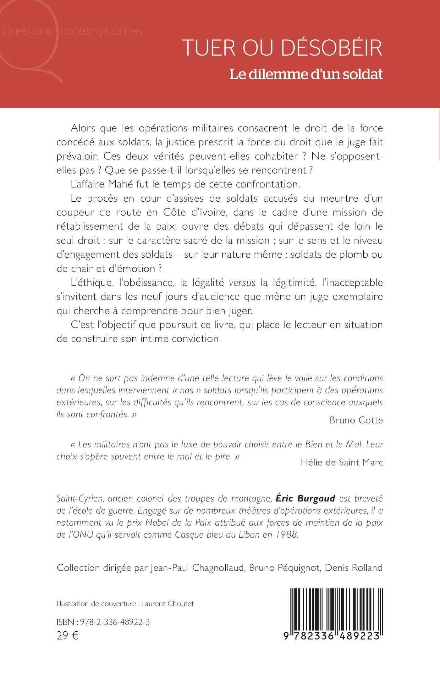 « On ne sort pas indemne d’une telle lecture qui lève le voile sur les conditions dans lesquelles interviennent « nos » soldats lorsqu’ils participent à des opérations extérieures, sur les difficultés qu’ils rencontrent, sur les cas de conscience auxquels ils sont confrontés. »