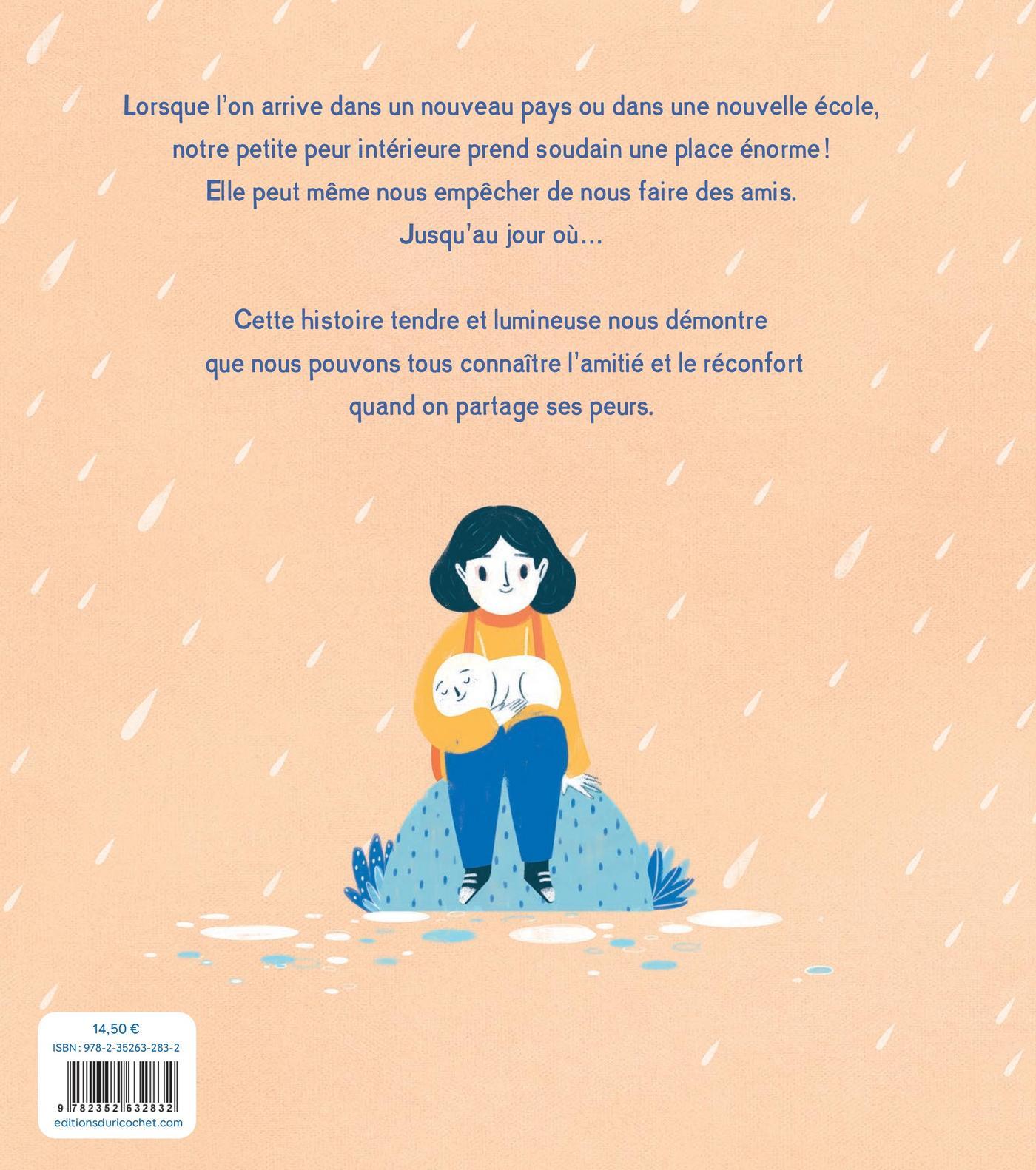 Depuis toujours, notre héroïne a une amie secrète. Son nom est Peur et toutes deux sont inséparables. Peur l’accompagne et veille sur elle partout où elle va. Un jour, elle emménage dans un nouveau pays, elle découvre sa nouvelle école et Peur grandit, grandit... Elle prend de plus en plus de place.Peur paralyse la petite fille devant les autres enfants à la récréation, elle la presse de rentrer à la maison à la fin de la journée, elle l’empêche de manger et de dormir… Jusqu’au jour où un garçon fait le premier pas, et lui livre à son tour son secret ! Parce que finalement, tout le monde a ses petites peurs !Un album tendre et lumineux qui montre l’importance de partager nos peurs pour mieux communiquer avec les autres.
