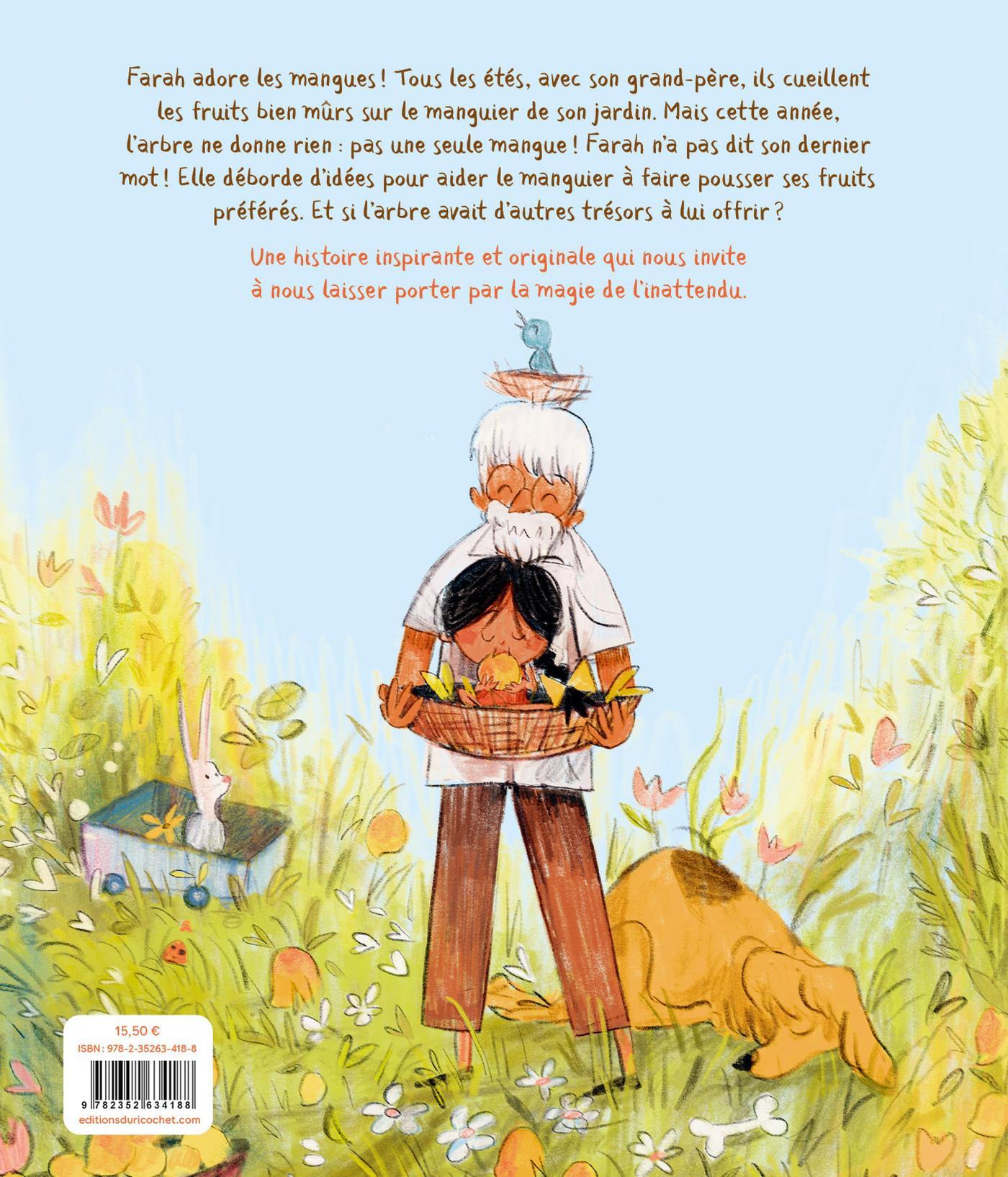 Farah ADORE les mangues ! Elle pourrait ne manger que ça, et même plonger dans un océan de mangues ! Les meilleures qu'elle connaisse poussent toujours sur le vieux manguier de son grand-père. Avec Mali, son chien, ils les ramassent ensemble chaque été.Mais voilà que cette année, l'arbre est... vide ! Pas une seule mangue n'a poussé et Farah est déçue. Alors pour donner un petit coup de pouce au manguier, elle va chanter, lui apporter de l'eau et du fumier, lui offrir des cadeaux... Mais rien y fait, l'arbre est désespérément inutile pour la petite fille.Inutile ? Vraiment ? Grand-père a plus d'un tour dans son sac pour l'aider à comprendre que le manguier a davantage à lui offrir que de belles mangues sucrées.