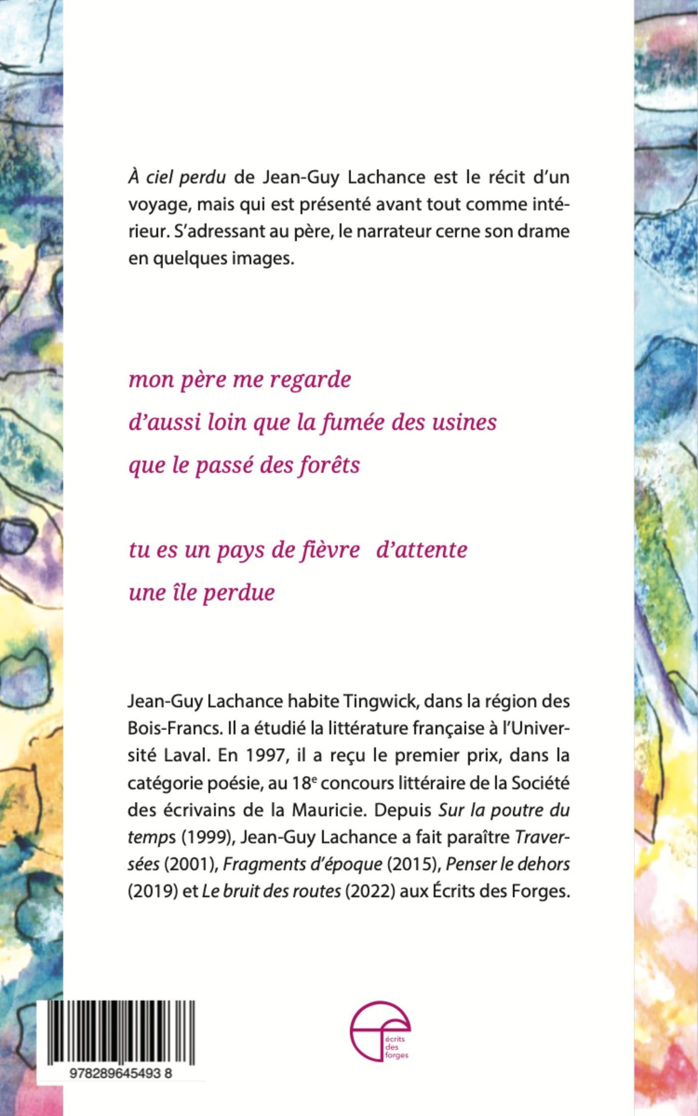 C’est sous le signe du ciel que s’inscrit À ciel perdu, de Jean-Guy Lachance. À cette allégorie de la mémoire, du temps comme de l’espace, le poète prête le rôle de témoin. Et il assigne à l’écriture le soin de véhiculer l’essence de sa démarche.