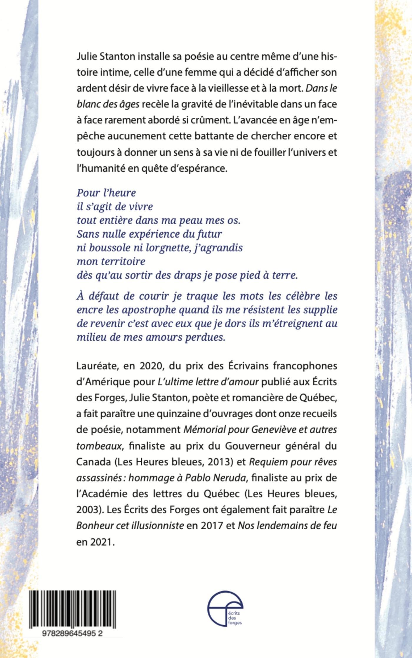Julie Stanton installe sa poésie au centre même d’une histoire intime, celle d’une femme qui a décidé d’afficher son ardent désir de vivre face à la vieillesse et à la mort.