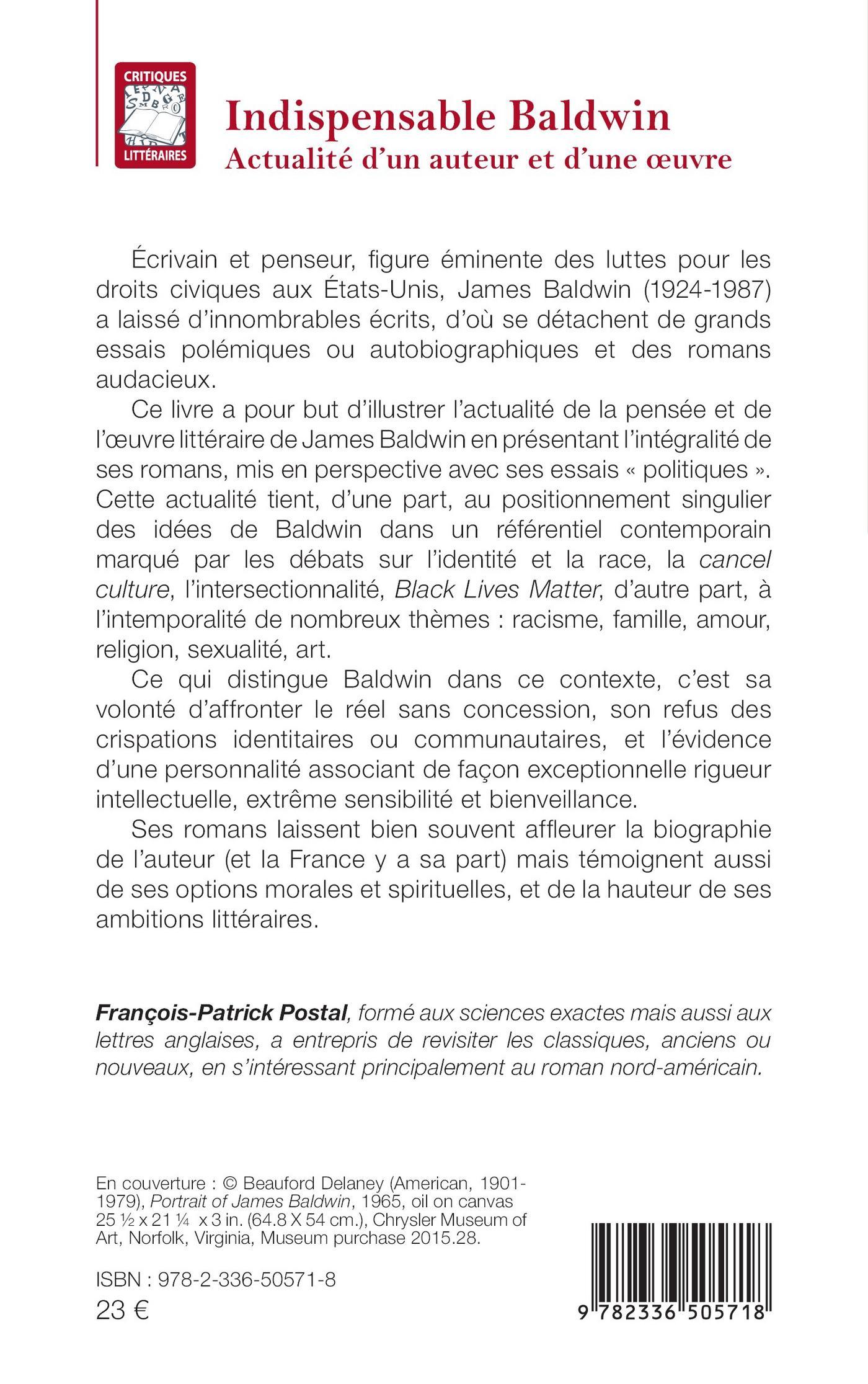 Ce livre a pour but d’illustrer l’actualité de la pensée et de l’œuvre littéraire de James Baldwin en présentant l’intégralité de ses romans, mis en perspective avec ses essais « politiques ».
