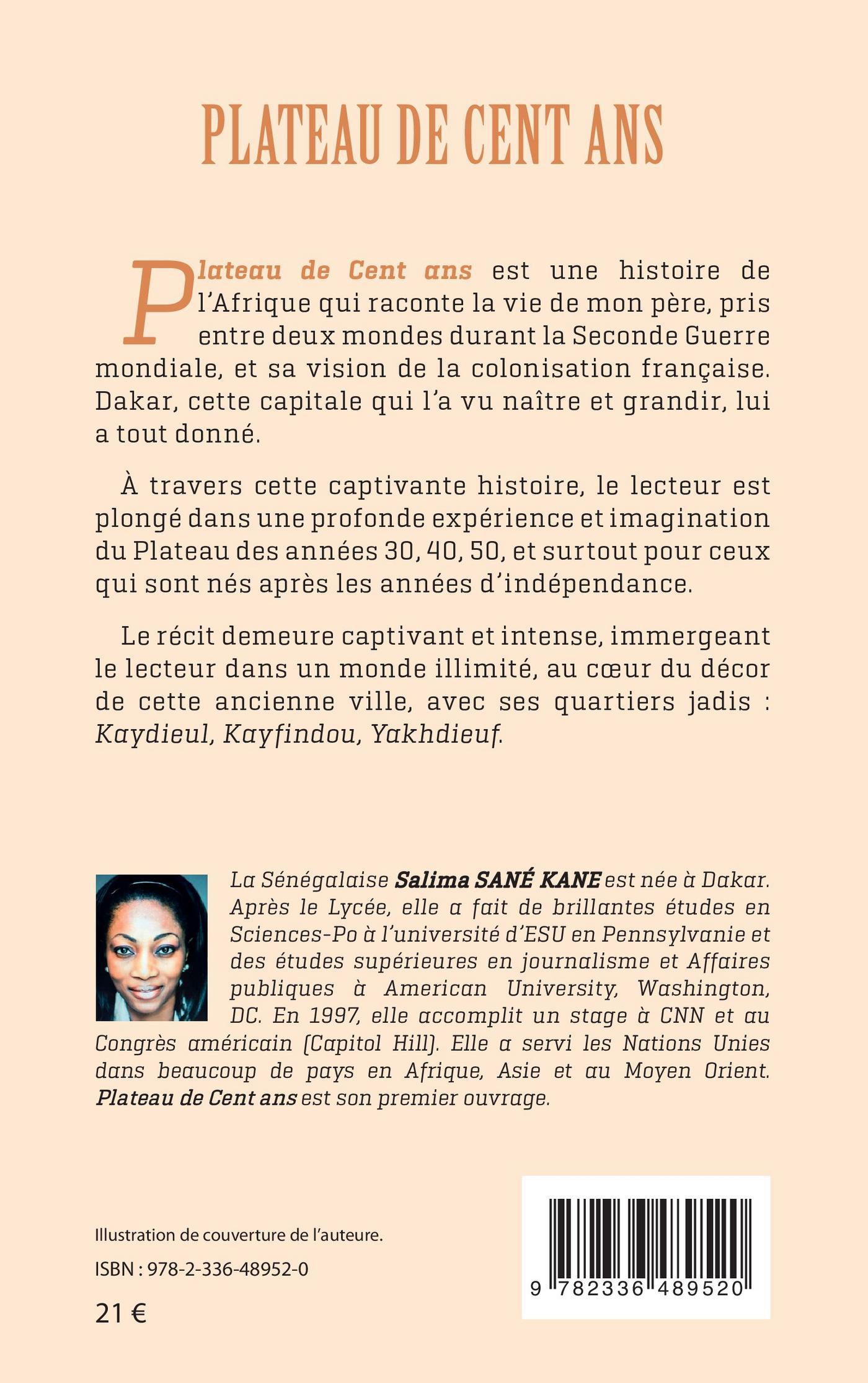 Plateau de Cent ans est une histoire de l'Afrique qui raconte la vie de mon père, pris entre deux mondes durant la Seconde Guerre mondiale, et sa vision de la colonisation française. Dakar, cette capitale qui l'a vu naître et grandir, lui a tout donné.
