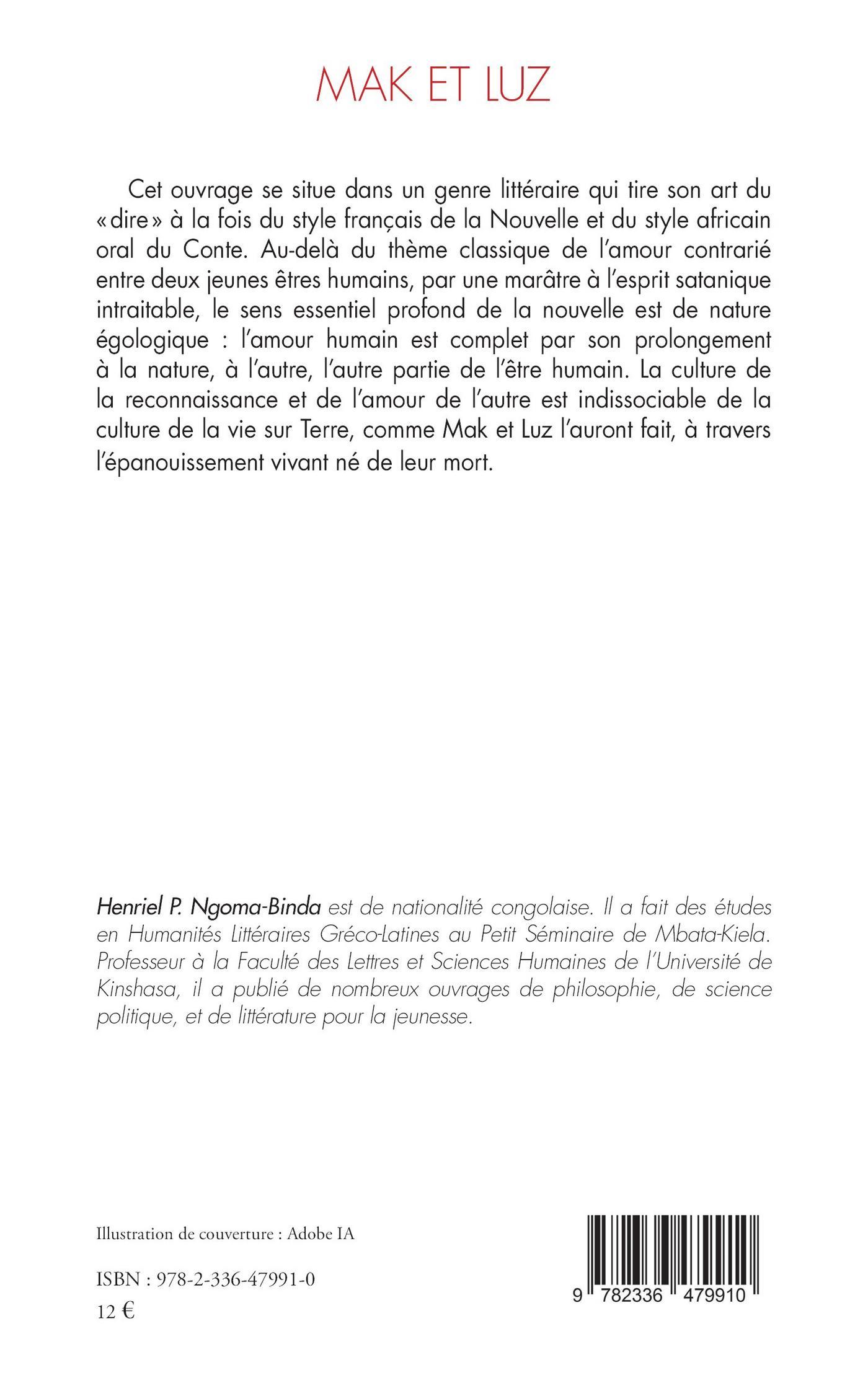 Cet ouvrage se situe dans un genre littéraire qui tire son art du « dire » à la fois du style français de la Nouvelle et du style africain oral du Conte. Au-delà du thème classique de l’amour contrarié entre deux jeunes êtres humains, par une marâtre à l’esprit satanique intraitable, le sens essentiel profond de la nouvelle est de nature égologique : l’amour humain est complet par son prolongement à la nature, à l’autre, l’autre partie de l’être humain. La culture de la reconnaissance et de l’amour de l’autre est indissociable de la culture de la vie sur terre, comme Mak et Luz l’auront fait, à travers l’épanouissement vivant né de leur mort.
