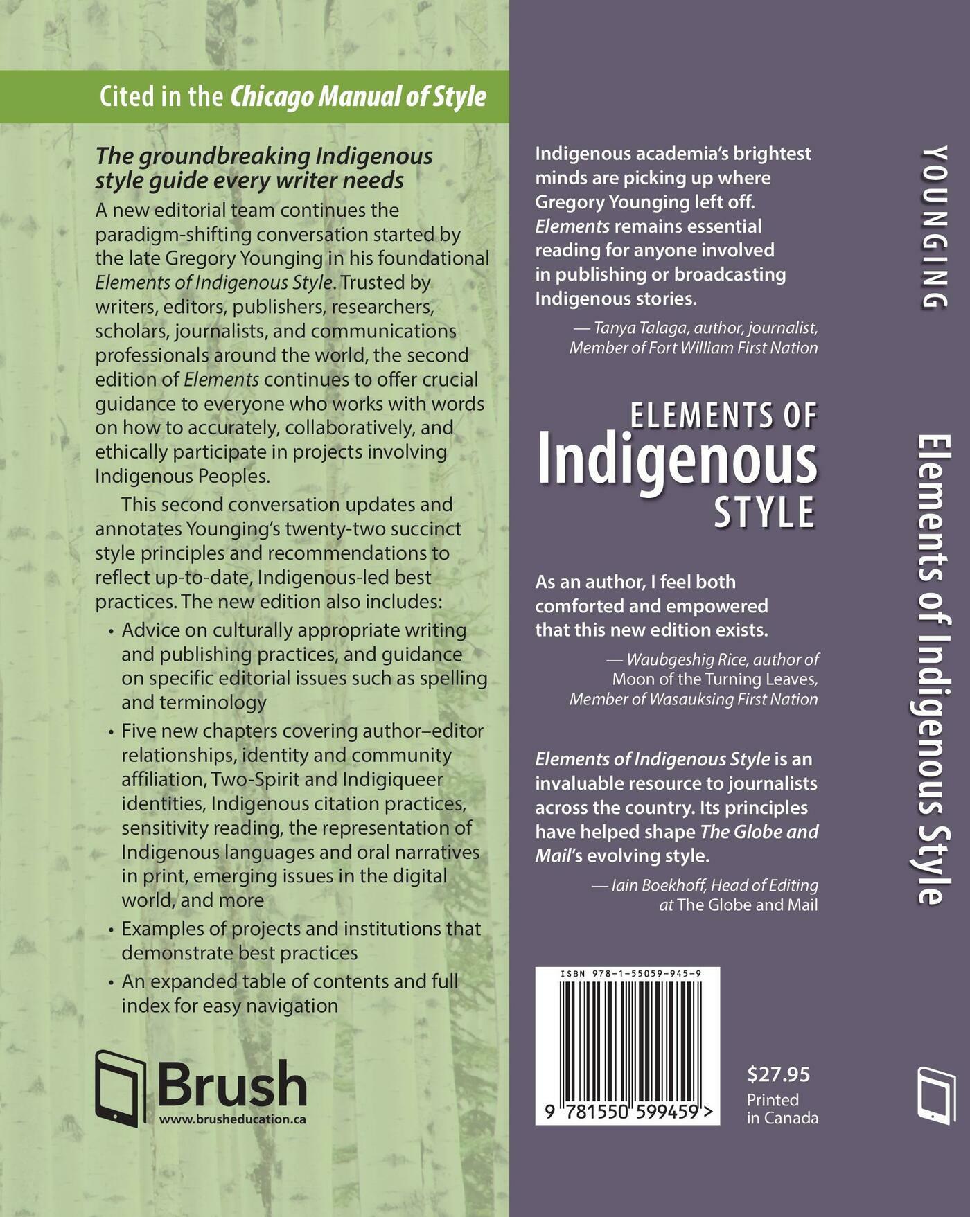 A new editorial team continues the paradigm-shifting conversation started by the late Gregory Younging in his foundational Elements of Indigenous Style. Trusted by writers, editors, publishers, researchers, scholars, journalists, and communications professionals around the world, the second edition of Elements continues to offer crucial guidance to everyone who works with words on how to accurately, collaboratively, and ethically participate in projects involving Indigenous Peoples.