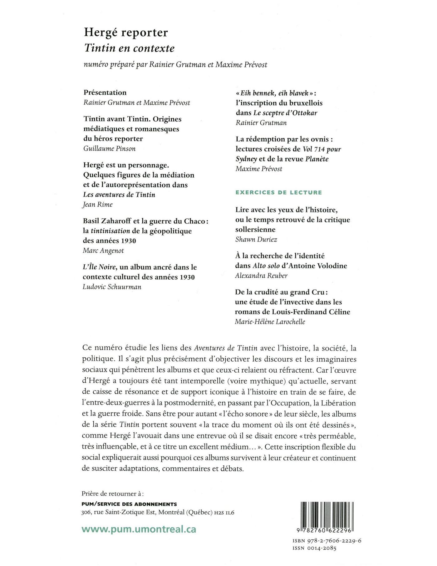 Rainier Grutman, Maxime Prévost, Guillaume PINSON, Jean Rime, Marc Angenot, Ludovic Schuurman, Shawn Duriez, Alexandra Reuber, Marie-Hélène Larochelle