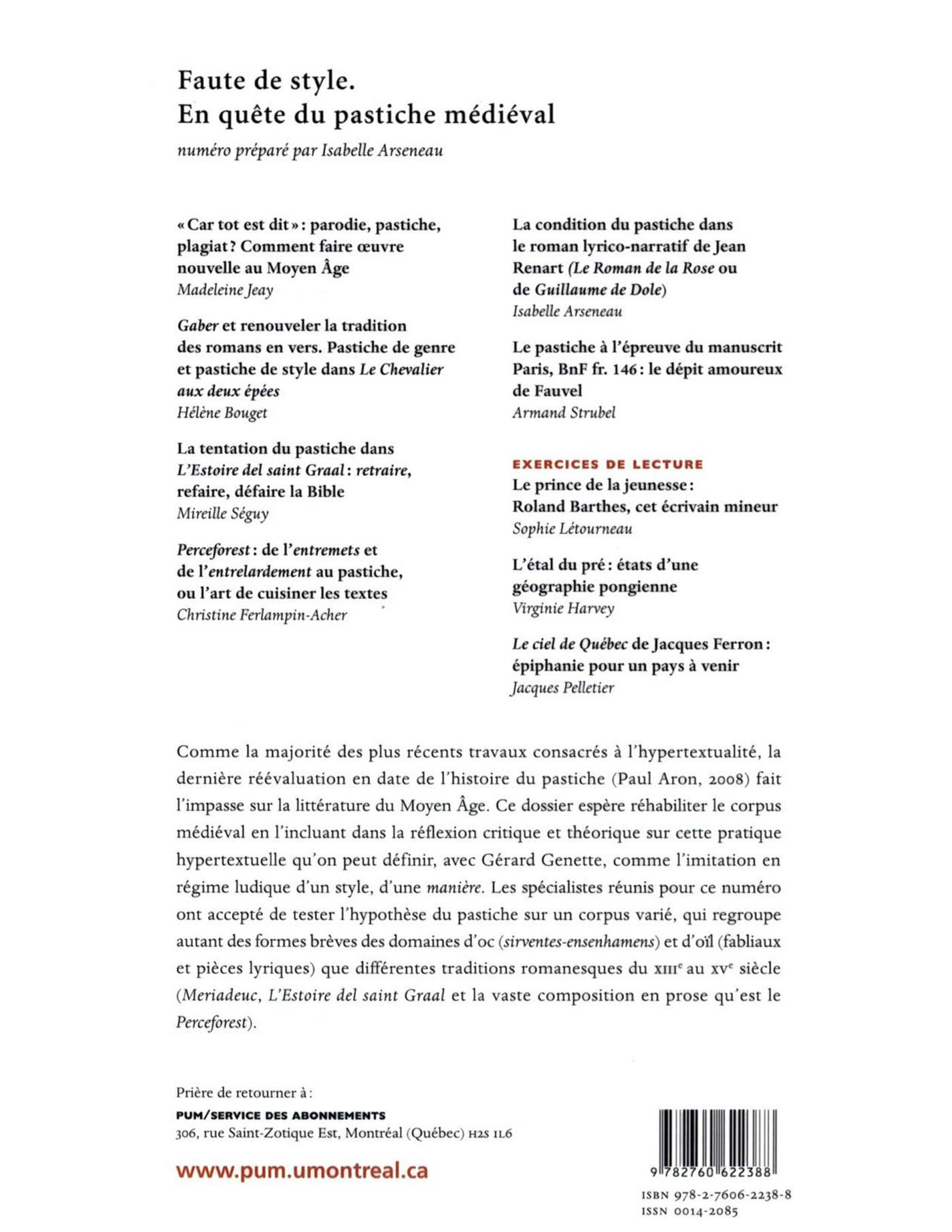 Isabelle Arseneau, Madeleine Jeay, Hélène Bouget, Mireille Séguy, Christine Ferlampin-Acher, Armand Strubel, Sophie Létourneau, Virginie Harvey, Jacques Pelletier