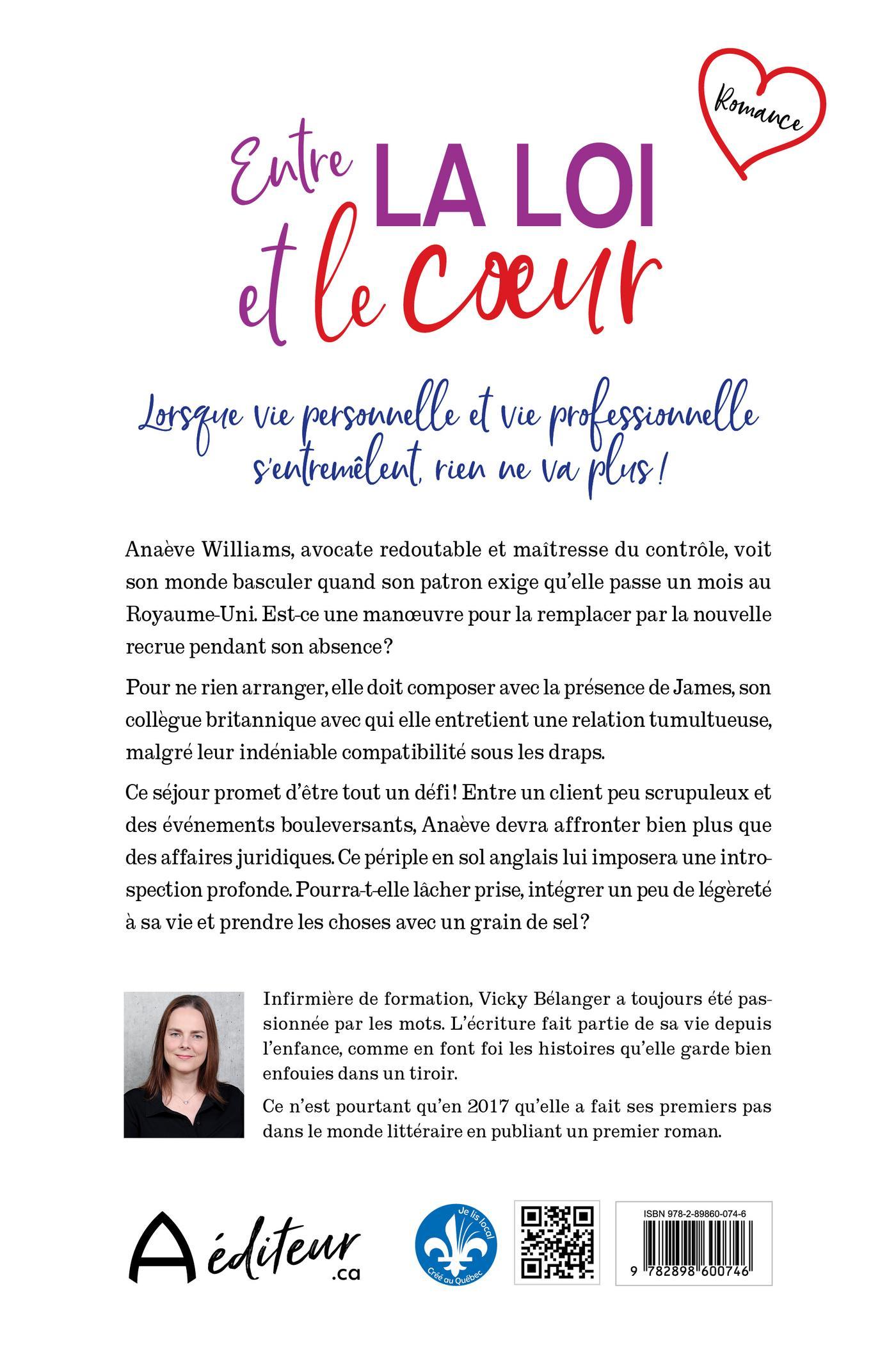 Anaève Williams, avocate redoutable et maîtresse du contrôle, voit son monde basculer quand son patron exige qu’elle passe un mois au Royaume-Uni. Est-ce une manoeuvre pour la remplacer par la nouvelle recrue pendant son absence ? Pour ne rien arranger, elle doit composer avec la présence de James, son collègue britannique avec qui elle entretient une relation tumultueuse, malgré leur indéniable compatibilité sous les draps. Ce séjour promet d’être tout un défi ! Entre un client peu scrupuleux et des événements bouleversants, Anaève devra affronter bien plus que des affaires juridiques. Ce périple en sol anglais lui imposera une introspection profonde.