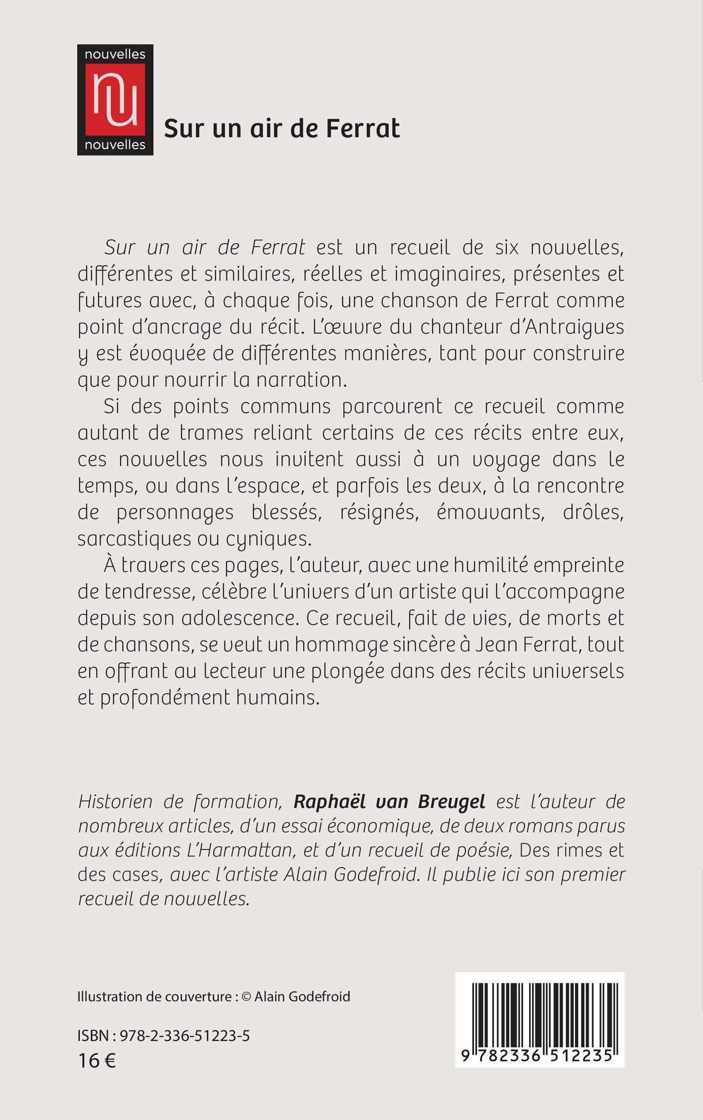 Sur un air de Ferrat est un recueil de six nouvelles, différentes et similaires, réelles et imaginaires, présentes et futures avec, à chaque fois, une chanson de Ferrat comme point d’ancrage du récit. L’œuvre du chanteur d’Antraigues y est évoquée de différentes manières, tant pour construire que pour nourrir la narration.