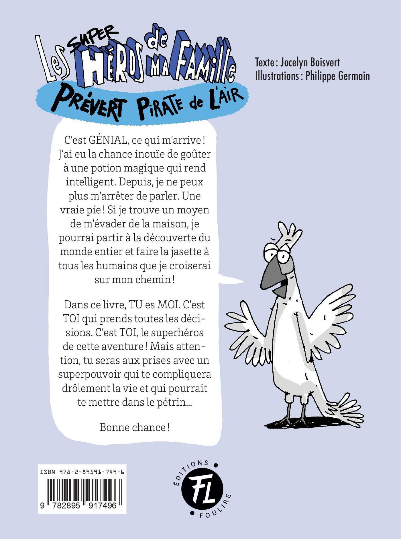C’est GÉNIAL, ce qui m’arrive ! J’ai eu la chance inouïe de goûter à une potion magique qui rend intelligent. Depuis, je ne peux plus m’arrêter de parler. Une vraie pie ! Si je trouve un moyen de m’évader de la maison, je pourrai partir à la découverte du monde entier et faire la jasette à tous les humains que je croiserai sur mon chemin ! Dans ce livre, TU es MOI. C’est TOI qui prends toutes les décisions. C’est TOI, le superhéros de cette aventure ! Mais attention, tu seras aux prises avec un superpouvoir qui te compliquera drôlement la vie et qui pourrait te mettre dans le pétrin…