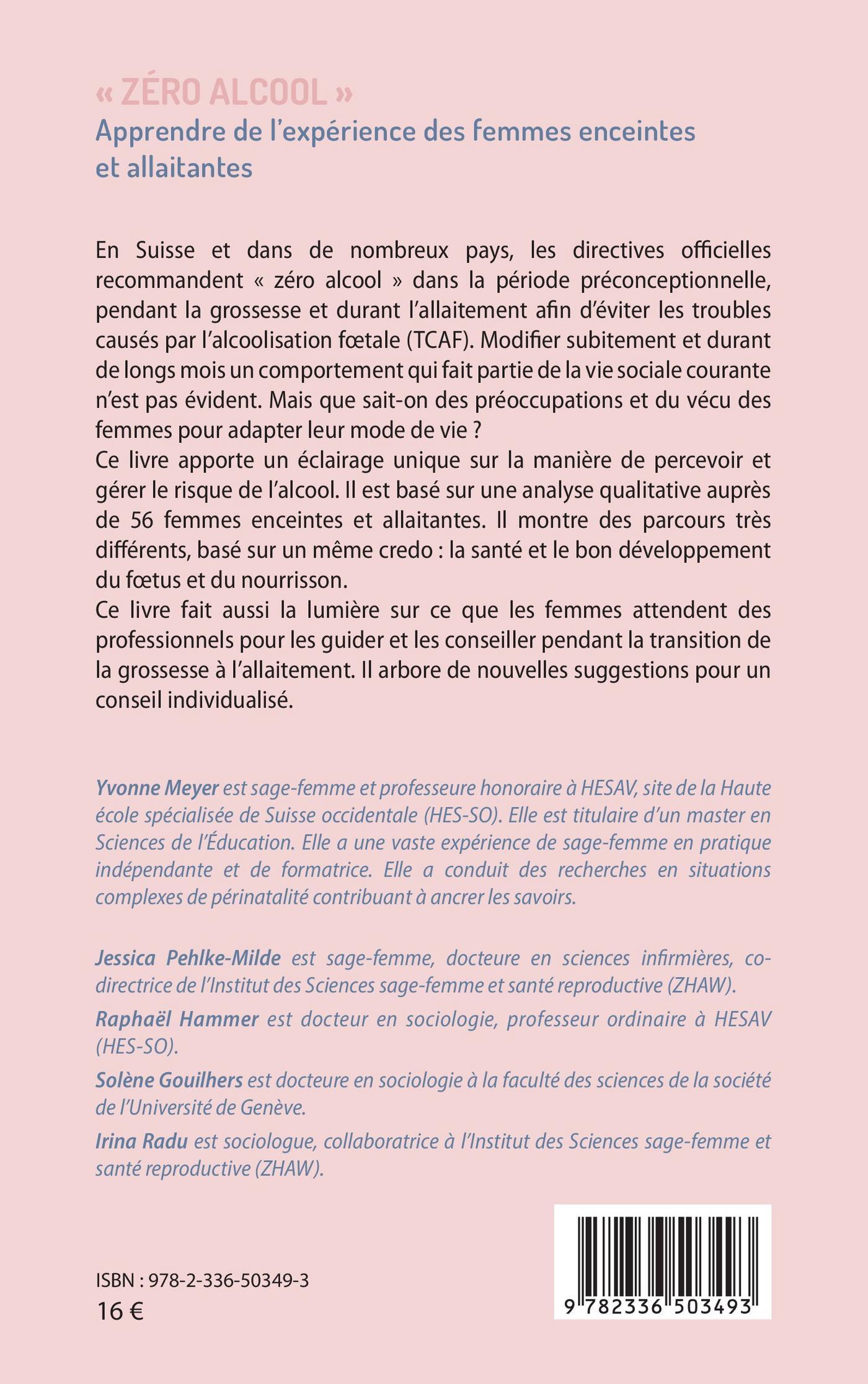 Ce livre apporte un éclairage unique sur la manière de percevoir et gérer le risque de l’alcool. Il est basé sur une analyse qualitative auprès de 56 femmes enceintes et allaitantes. Il montre des parcours très différents, basé sur un même credo : la santé et le bon développement du fœtus et du nourrisson.
