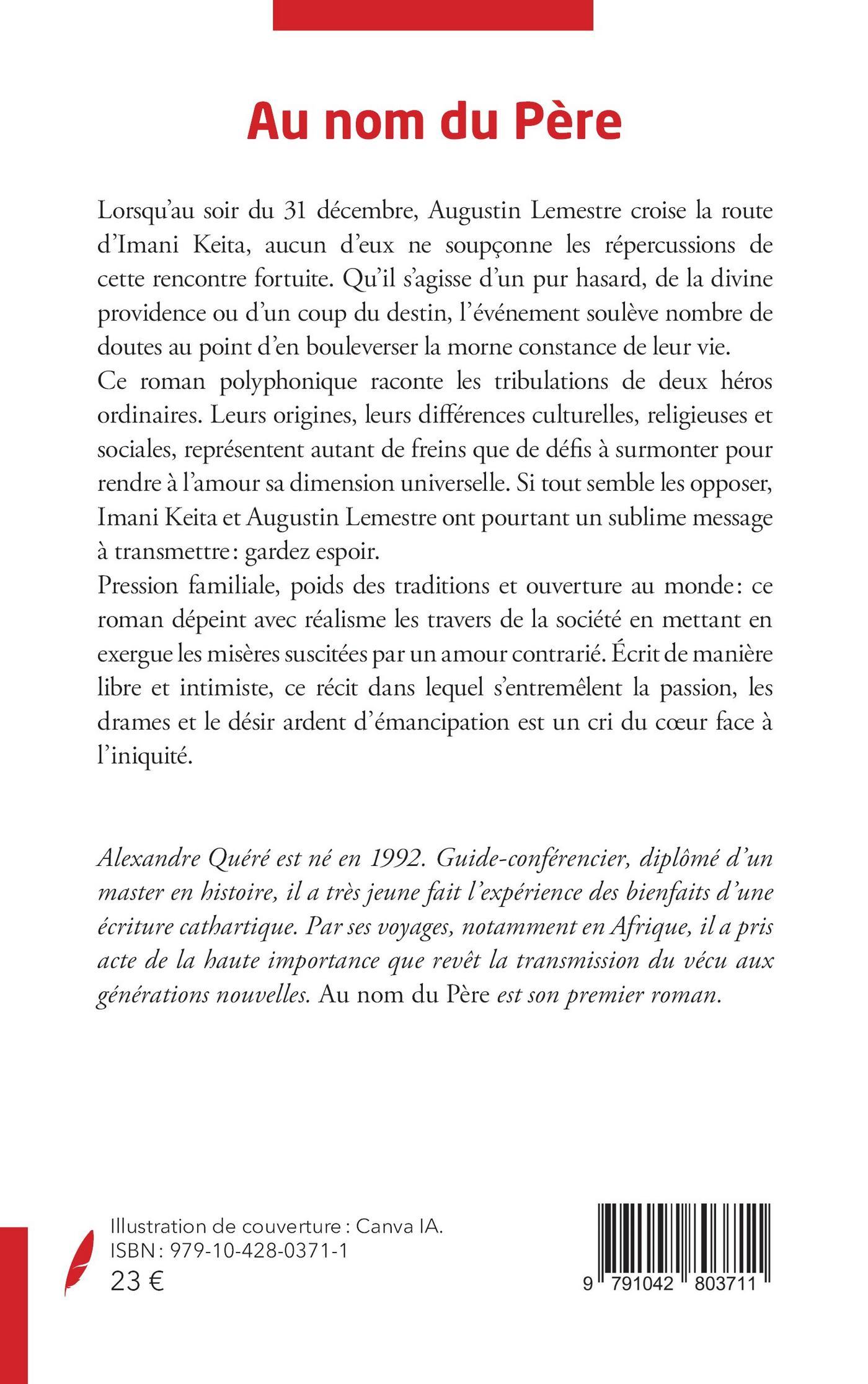 Ce roman polyphonique raconte les tribulations de deux héros ordinaires. Leurs origines, leurs différences culturelles, religieuses et sociales, représentent autant de freins que de défis à surmonter pour rendre à l’amour sa dimension universelle. Si tout semble les opposer, Imani Keita et Augustin Lemestre ont pourtant un sublime message à transmettre : gardez espoir.