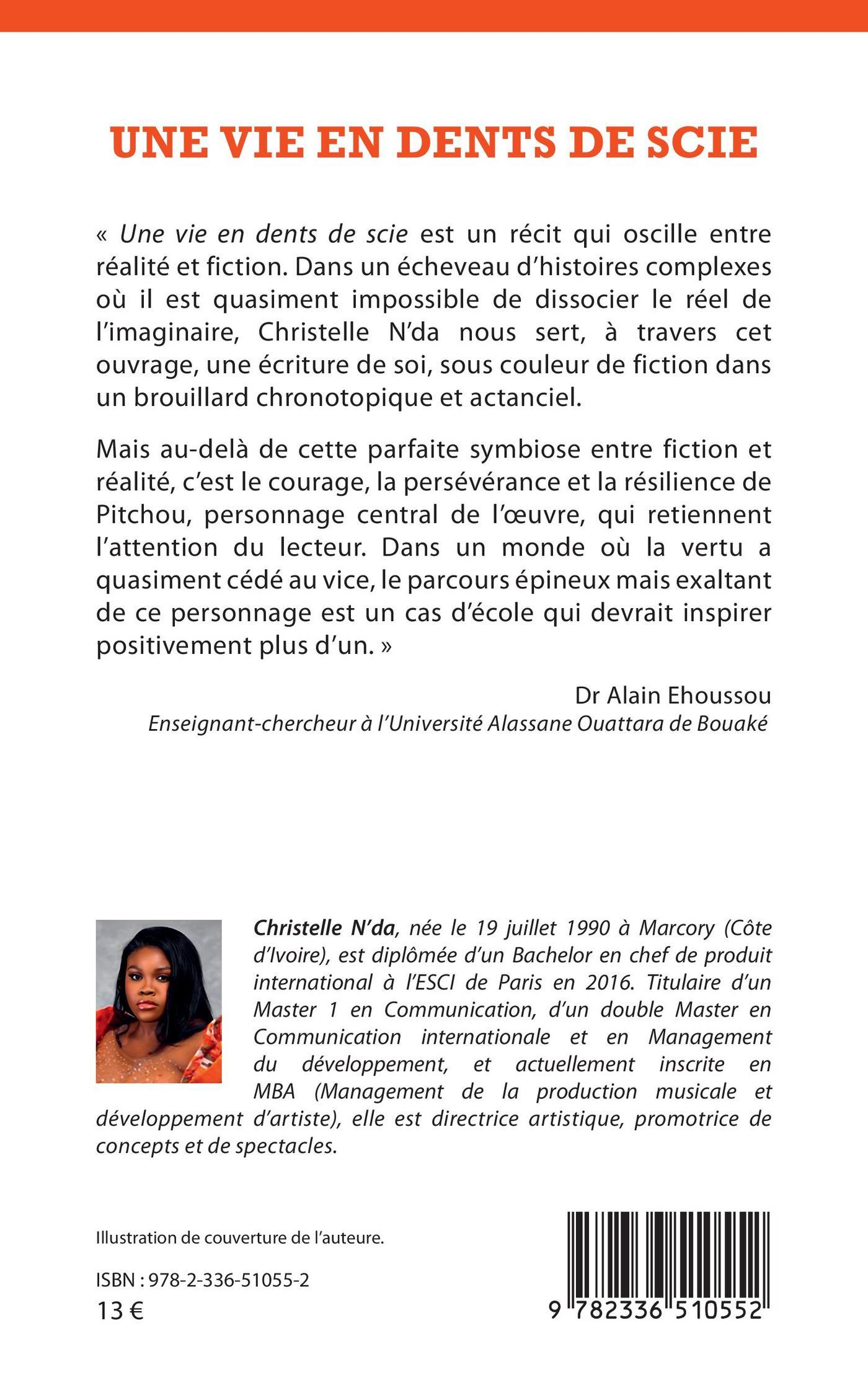 « Une vie en dents de scie est un récit qui oscille entre réalité et fiction. Dans un écheveau d’histoires complexes où il est quasiment impossible de dissocier le réel de l’imaginaire, Christelle N’da nous sert, à travers cet ouvrage, une écriture de soi, sous couleur de fiction dans un brouillard chronotopique et actanciel.
