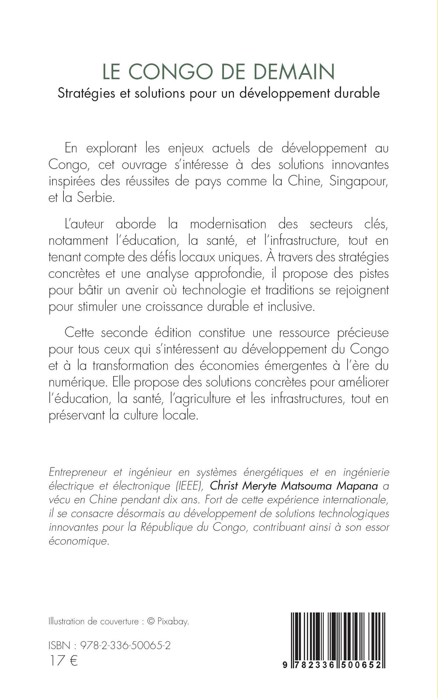 En explorant les enjeux actuels de développement au Congo, cet ouvrage s’intéresse à des solutions innovantes inspirées des réussites de pays comme la Chine, Singapour, et la Serbie.