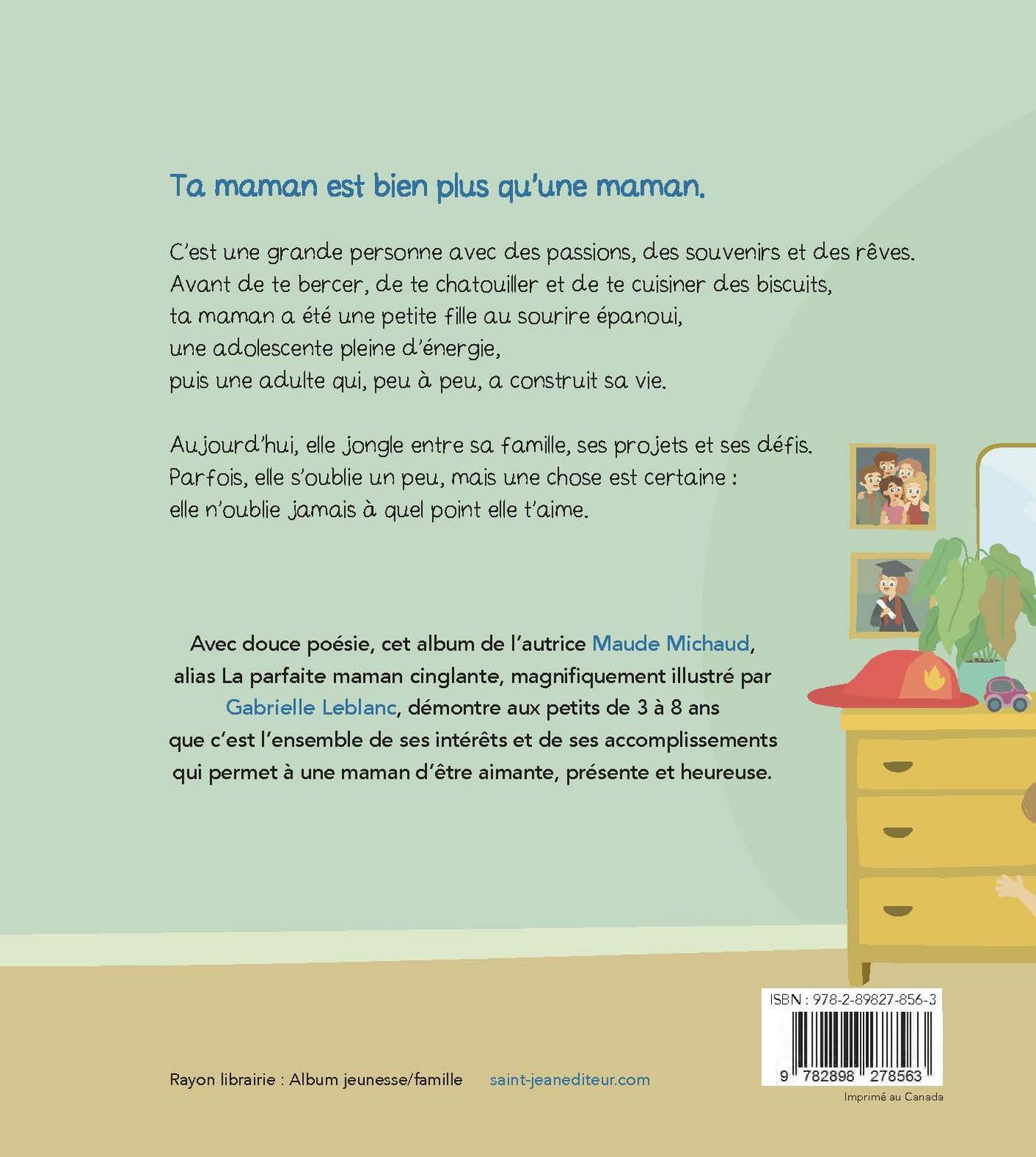 Qui est maman? souhaite expliquer aux enfants que leur mère est bien plus qu’une maman. C'est une femme qui a commencé sa vie dans le ventre de grand-maman, puis une enfant, une adolescente, puis une adulte avec des intérêts, des rêves, des passions et des aspirations. Aujourd’hui, elle est non seulement une maman, mais aussi une fille, une sœur, une amie, une employée, une amoureuse. Et au-delà de ces rôles, maman est bien plus. C’est une femme forte, sensible, résiliente, rêveuse qui, parfois, s’oublie un peu trop…L’objectif de cet album aux illustrations qui font rêver est de permettre aux enfants (et aux mamans) de comprendre qu’une mère est bien plus qu’une mère. Avec une douce poésie, l’auteure démontre aux petits que c’est par tous ses accomplissements et ses intérêts qu’elle peut être une maman aussi extraordinaire, qu’elle peut être aussi aimante, présente et heureuse.Le rôle de maman est extraordinaire… mais cet album aide aussi les mamans et leur entourage à en finir avec l’idée, transmise de génération en génération, selon laquelle les femmes doivent sacrifier tout ce qu’elles sont pour se concentrer uniquement sur leur rôle de maman lorsqu’elles mettent un enfant au monde.