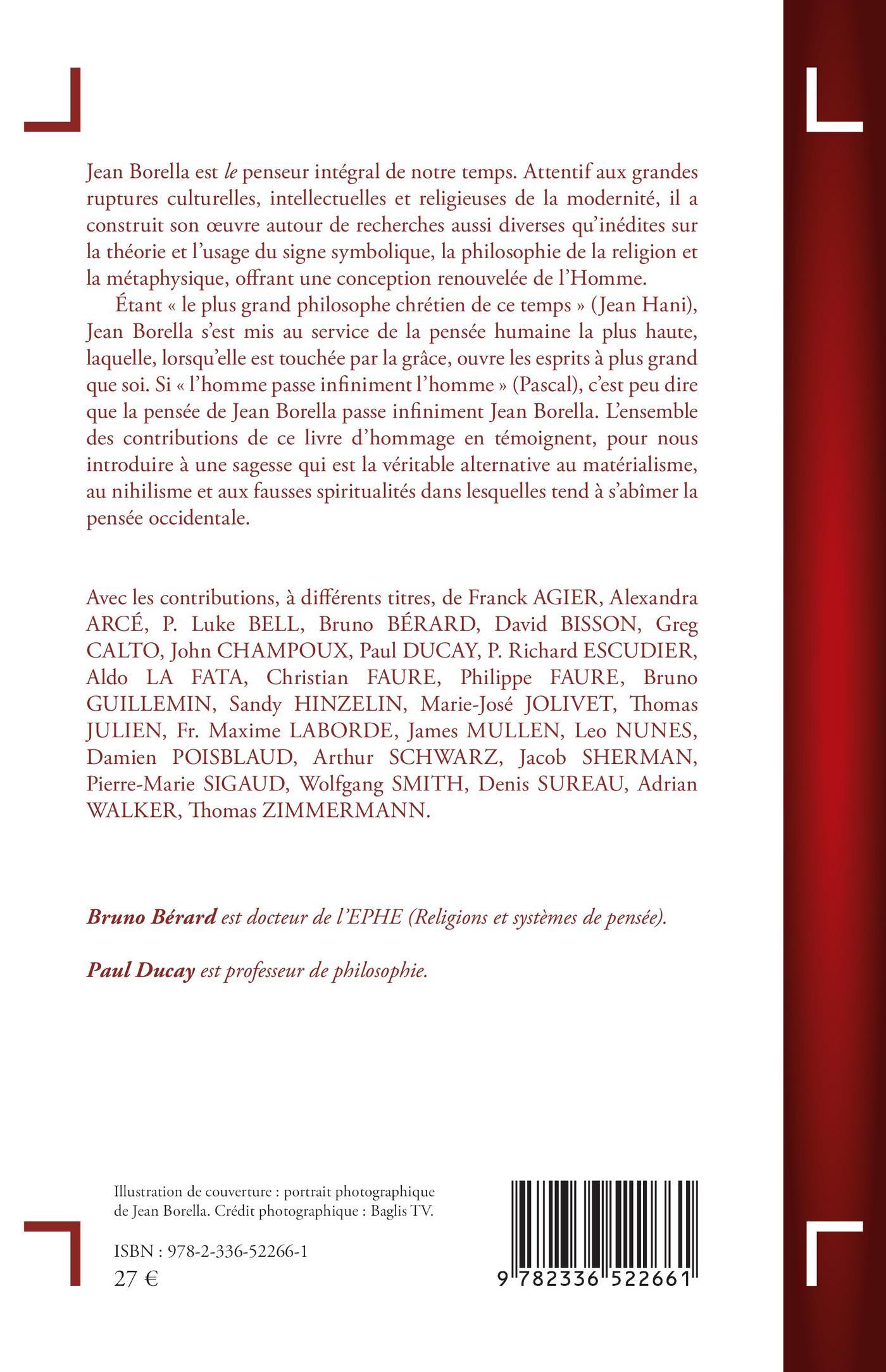 Étant « le plus grand philosophe chrétien de ce temps » (Jean Hani), Jean Borella s’est mis au service de la pensée humaine la plus haute, laquelle, lorsqu’elle est touchée par la grâce, ouvre les esprits à plus grand que soi. Si « l’homme passe infiniment l’homme » (Pascal), c’est peu dire que la pensée de Jean Borella passe infiniment Jean Borella. L’ensemble des contributions de ce livre d’hommage en témoignent, pour nous introduire à une sagesse qui est la véritable alternative au matérialisme, au nihilisme et aux fausses spiritualités dans lesquelles tend à s’abîmer la pensée occidentale.