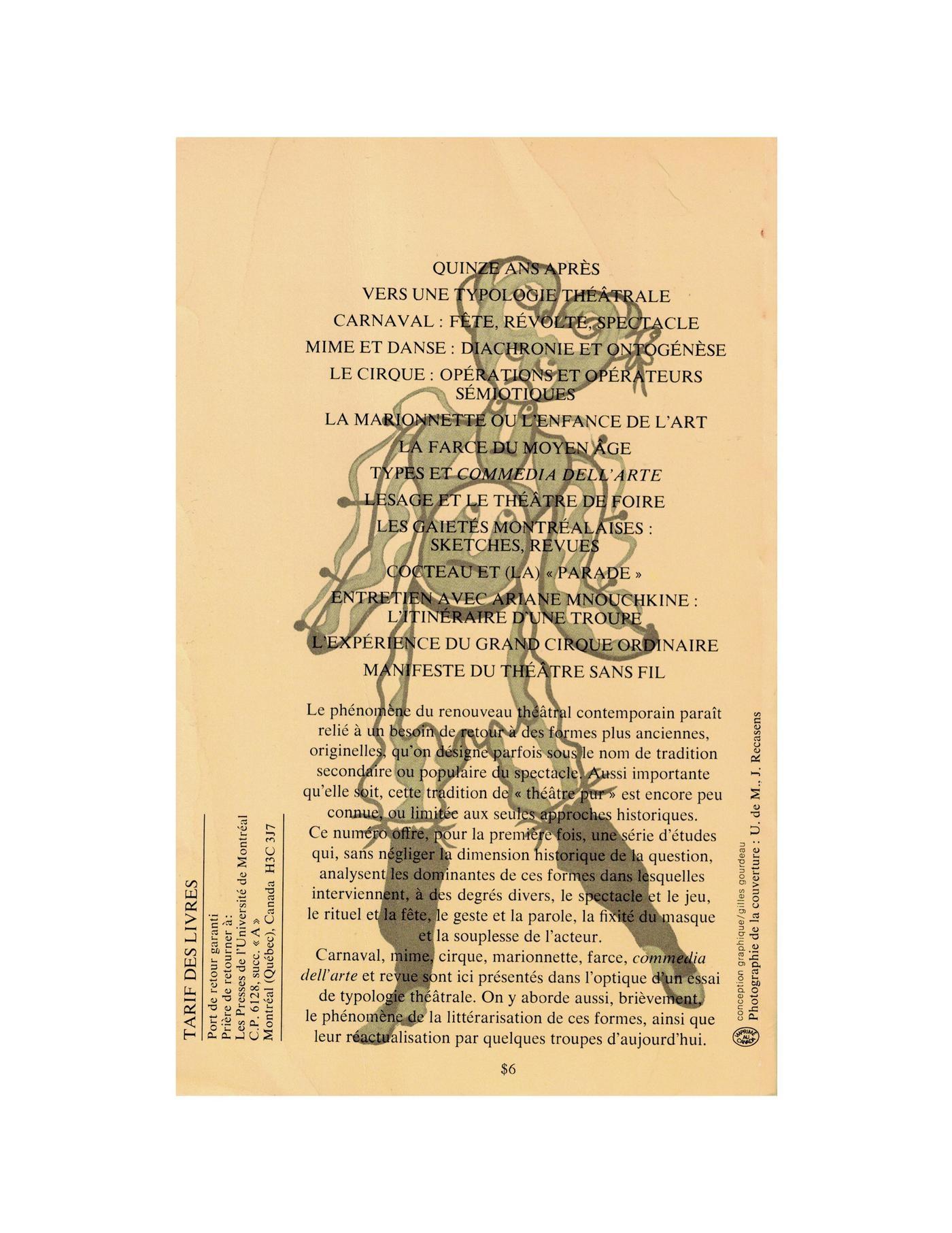 Michèle Archambault, Jean Du Berger, Jack Warwick, Laurent Mailhot, Clément Moisan, Gilles Dorion, Normand Leroux, François Ricard, Nicole Brossard