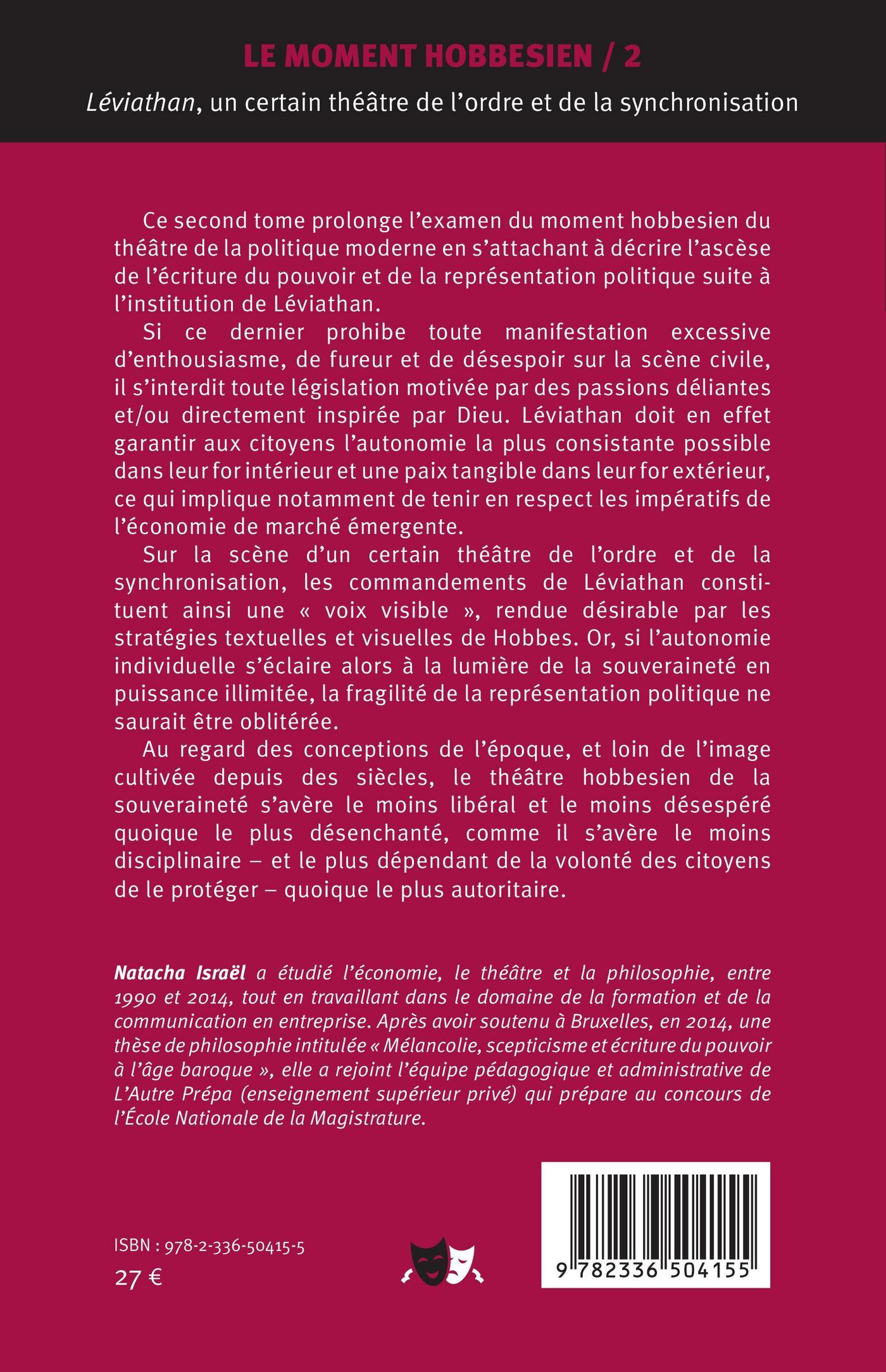 Ce second tome prolonge l’examen du moment hobbesien du théâtre de la politique moderne en s’attachant à décrire l’ascèse de l’écriture du pouvoir et de la représentation politique suite à l’institution de Léviathan.