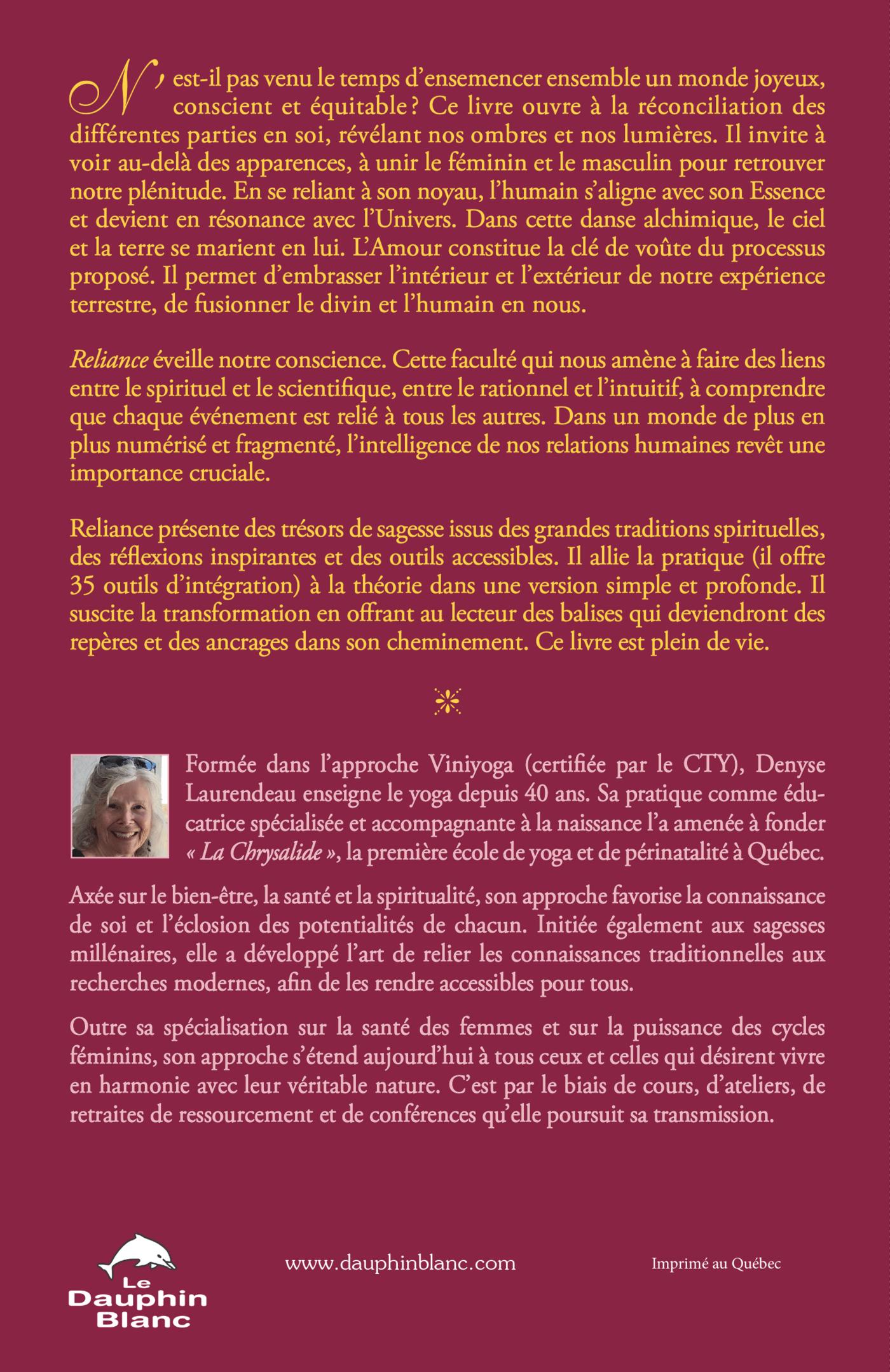 N’est-il pas venu le temps d’ensemencer ensemble un monde joyeux, conscient et équitable? Ce livre ouvre à la réconciliation des différentes parties en soi, révélant nos ombres et nos lumières. Il invite à voir au-delà des apparences, à unir le féminin et le masculin pour retrouver notre plénitude. En se reliant à son noyau, l’humain s’aligne avec son Essence et devient en résonance avec l’Univers. Dans cette danse alchimique, le ciel et la terre se marient en lui. L’Amour constitue la clé de voûte du processus proposé. Il permet d’embrasser l’intérieur et l’extérieur de notre expérience terrestre, de fusionner le divin et l’humain en nous.Reliance éveille notre conscience. Cette faculté qui nous amène à faire des liens entre le spirituel et le scientifique, entre le rationnel et l’intuitif, à comprendre que chaque événement est relié à tous les autres. Dans un monde de plus en plus numérisé et fragmenté, l’intelligence de nos relations humaines revêt une importance cruciale. Reliance présente des trésors de sagesse issus des grandes traditions spirituelles, des réflexions inspirantes et des outils accessibles. Il allie la pratique (il offre 35 outils d’intégration) à la théorie dans une version simple et profonde. Il suscite la transformation en offrant au lecteur des balises qui deviendront des repères et des ancrages dans son cheminement. Ce livre est plein de vie. L'auteure :Formée dans l’approche Viniyoga (certifiée par le CTY), Denyse Laurendeau enseigne le yoga depuis 40 ans. Axée sur le bien-être, la santé et la spiritualité, son approche favorise la connaissance de soi et l’éclosion des potentialités de chacun. Initiée également aux sagesses millénaires (ayurvéda, herboristerie, chamanisme, méditation), elle a développé l’art de relier ces précieuses connaissances traditionnelles aux recherches modernes afin de les rendre accessibles pour tous. Outre sa spécialisation sur la santé des femmes et sur la sagesse du cycle féminin, son approche s’étend aujourd’hui à tous ceux et celles qui désirent vivre en harmonie avec leur nature véritable. Elle a été accompagnante à la naissance «doulas», éducatrice périnatale, fondatrice de «La Chrysalide» la première école de yoga et périnatalité à Québec, et formatrice en yoga pré-natal, post-natal et ménopause. Elle a créé de nombreux ateliers sur la santé, le pouvoir et la sagesse du cycle féminin en plus d’animer des stages de ressourcements et des retraites en nature. Elle a aussi donné des conférences et a été masso-kinésithérapeute.