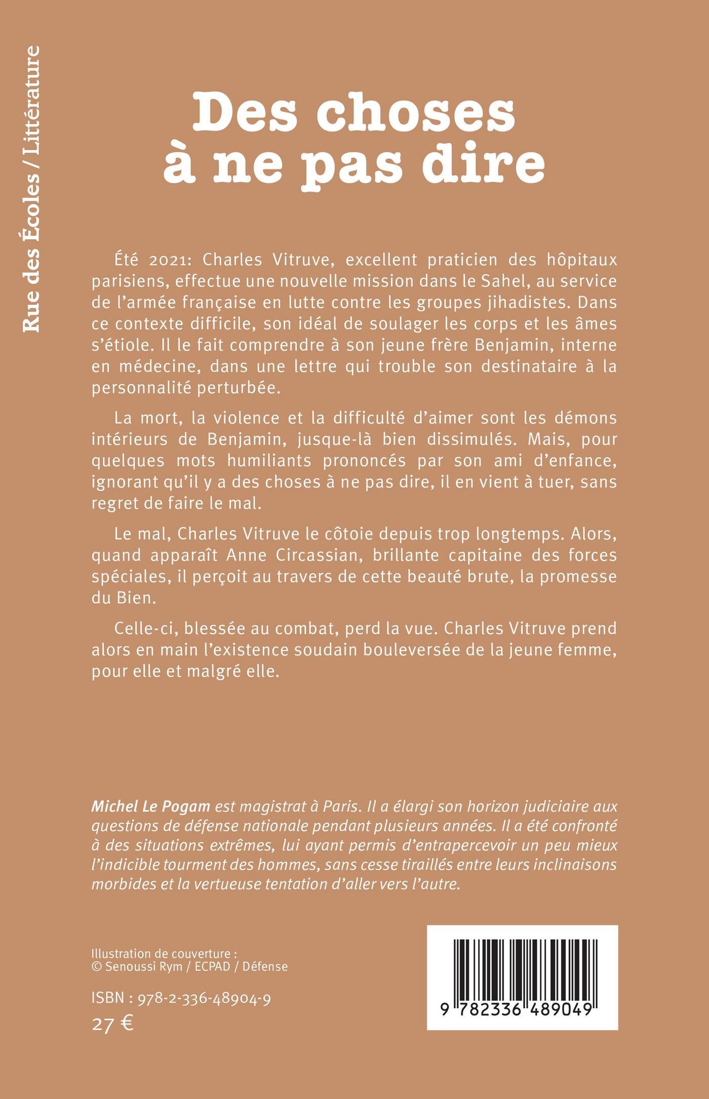 Été 2021: Charles Vitruve, excellent praticien des hôpitaux parisiens, effectue une nouvelle mission dans le Sahel, au service de l’armée française en lutte contre les groupes jihadistes. Dans ce contexte difficile, son idéal de soulager les corps et les âmes s’étiole. Il le fait comprendre à son jeune frère Benjamin, interne en médecine, dans une lettre qui trouble son destinataire à la personnalité perturbée.