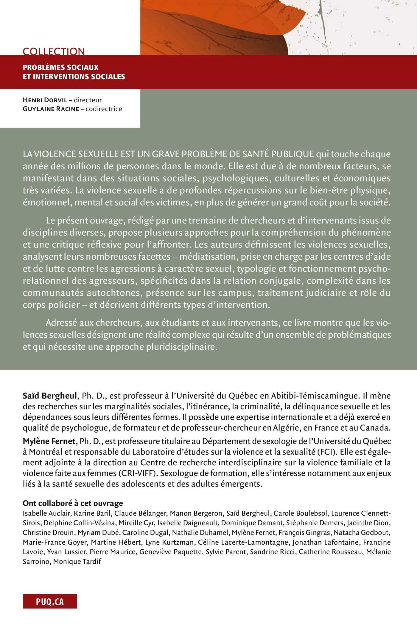 Nadine Larivière, Anaïs Lépine Lopez, Geneviève Fecteau, Benoit Desgroseillers, Isabelle Pinard, Anick Hurtubise, Pascal Tanguay, Marc Corbière, Saïd Bergheul, Oscar Labra, Carole Castro, Augustin Ependa, Juanpablo Bedoya, Gabrielle Marcotte-Beaumier, Gabriel Gingras-Lacroix, David Guilmette, Gilles Tremblay, Olivier Ferlatte, Normand Brodeur, Janie Houle, Philippe Roy, Émilie Dionne, Evelyne Touchette, Sabrina Servot, William Davidson-Urbain, Marie-Hélène Pennestri, Roger Godbout, Jacques Montplaisir, Stéphanie Turgeon, Jessica Turgeon, Marie-Michèle Dufour, Jessika Cleary, Sophie Meunier, Camille Roberge, François Lauzier-Jobin, Paula Pires de Oliveira Padilha, Geneviève Gagné, Srividya N. Iyer, Esther Thibeault, Mary Anne Levasseur, Hélène Massicotte, Amal Abdel-Baki