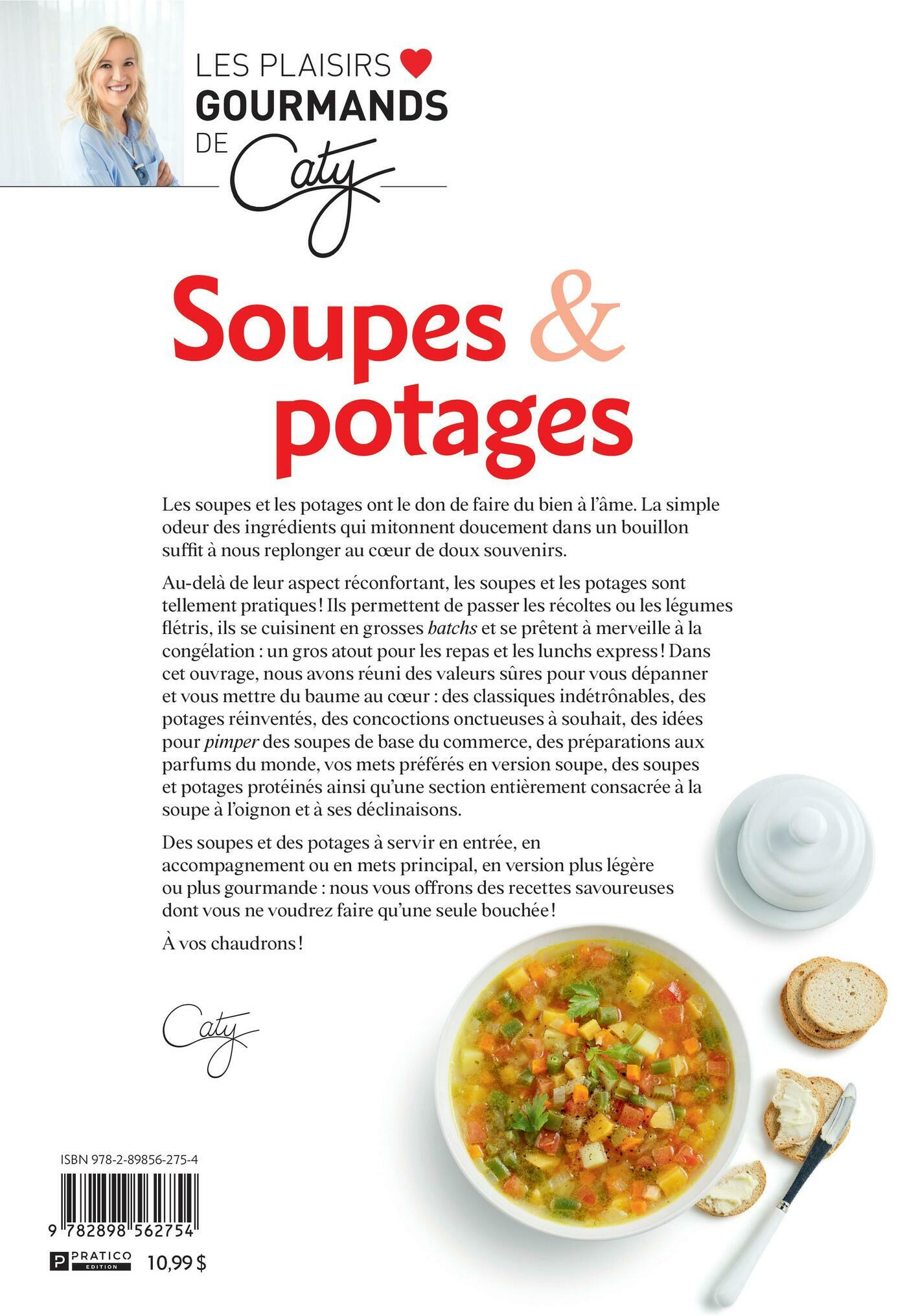 Les soupes et les potages ont le don de faire du bien à l’âme. La simple odeur des ingrédients qui mitonnent doucement dans un bouillon suffit à nous replonger au cœur de doux souvenirs. Au-delà de leur aspect réconfortant, les soupes et les potages sont tellement pratiques ! Ils permettent de passer les récoltes ou les légumes flétris, ils se cuisinent en grosses batchs et se prêtent à merveille à la congélation : un gros atout pour les repas et les lunchs express ! Dans cet ouvrage, nous avons réuni des valeurs sûres pour vous dépanner et vous mettre du baume au coeur : des classiques indétrônables, des potages réinventés, des concoctions onctueuses à souhait, des idées pour pimper des soupes de base du commerce, des préparations aux parfums du monde, vos mets préférés en version soupe, des soupes et potages protéinés ainsi qu’une section entièrement consacrée à la soupe à l’oignon et à ses déclinaisons. Des soupes et des potages à servir en entrée, en accompagnement ou en mets principal, en version plus légère ou plus gourmande : nous vous offrons des recettes savoureuses dont vous ne voudrez faire qu’une seule bouchée !À vos chaudrons !
