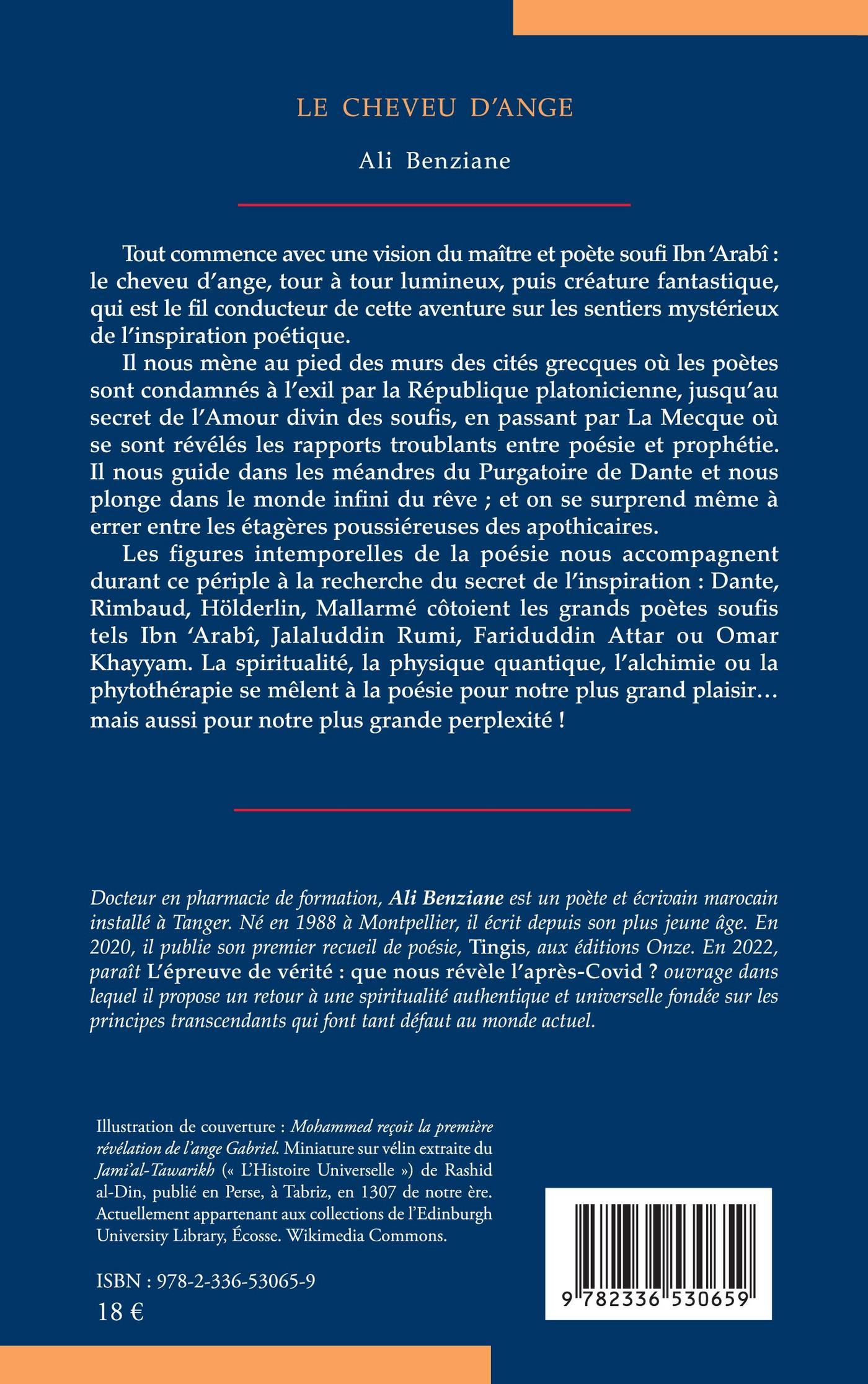 Tout commence avec une vision du maître et poète soufi Ibn ‘Arabî : le cheveu d’ange, tour à tour lumineux, puis créature fantastique, qui est le fil conducteur de cette aventure sur les sentiers mystérieux de l’inspiration poétique.