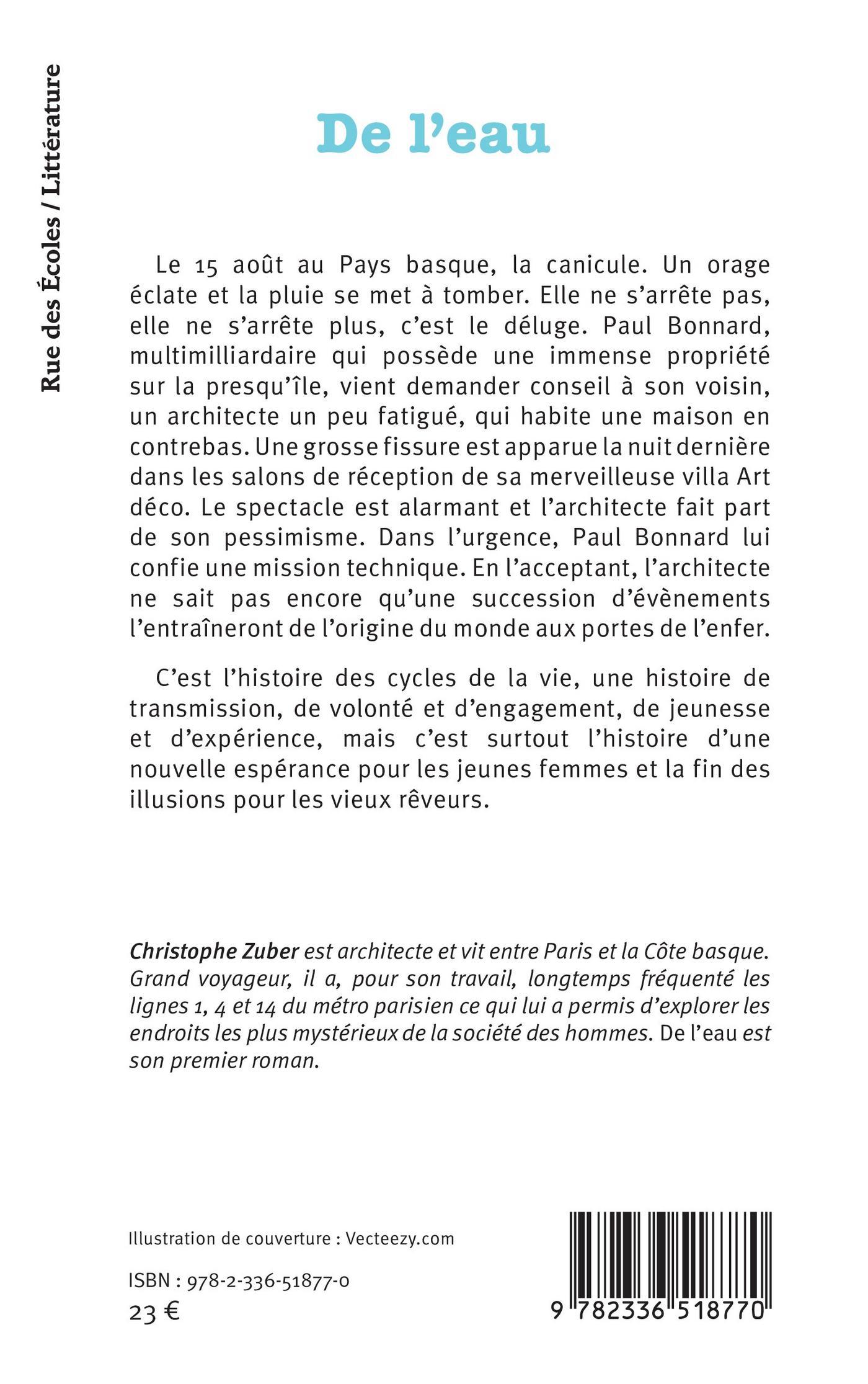 Le 15 août au Pays basque, la canicule. Un orage éclate et la pluie se met à tomber. Elle ne s’arrête pas, elle ne s’arrête plus, c’est le déluge. Paul Bonnard, multimilliardaire qui possède une immense propriété sur la presqu’île, vient demander conseil à son voisin, un architecte un peu fatigué, qui habite une maison en contrebas. Une grosse fissure est apparue la nuit dernière dans les salons de réception de sa merveilleuse villa Art déco. Le spectacle est alarmant et l’architecte fait part de son pessimisme. Dans l’urgence, Paul Bonnard lui confie une mission technique. En l’acceptant, l’architecte ne sait pas encore qu’une succession d’évènements l’entraîneront de l’origine du monde aux portes de l’enfer.