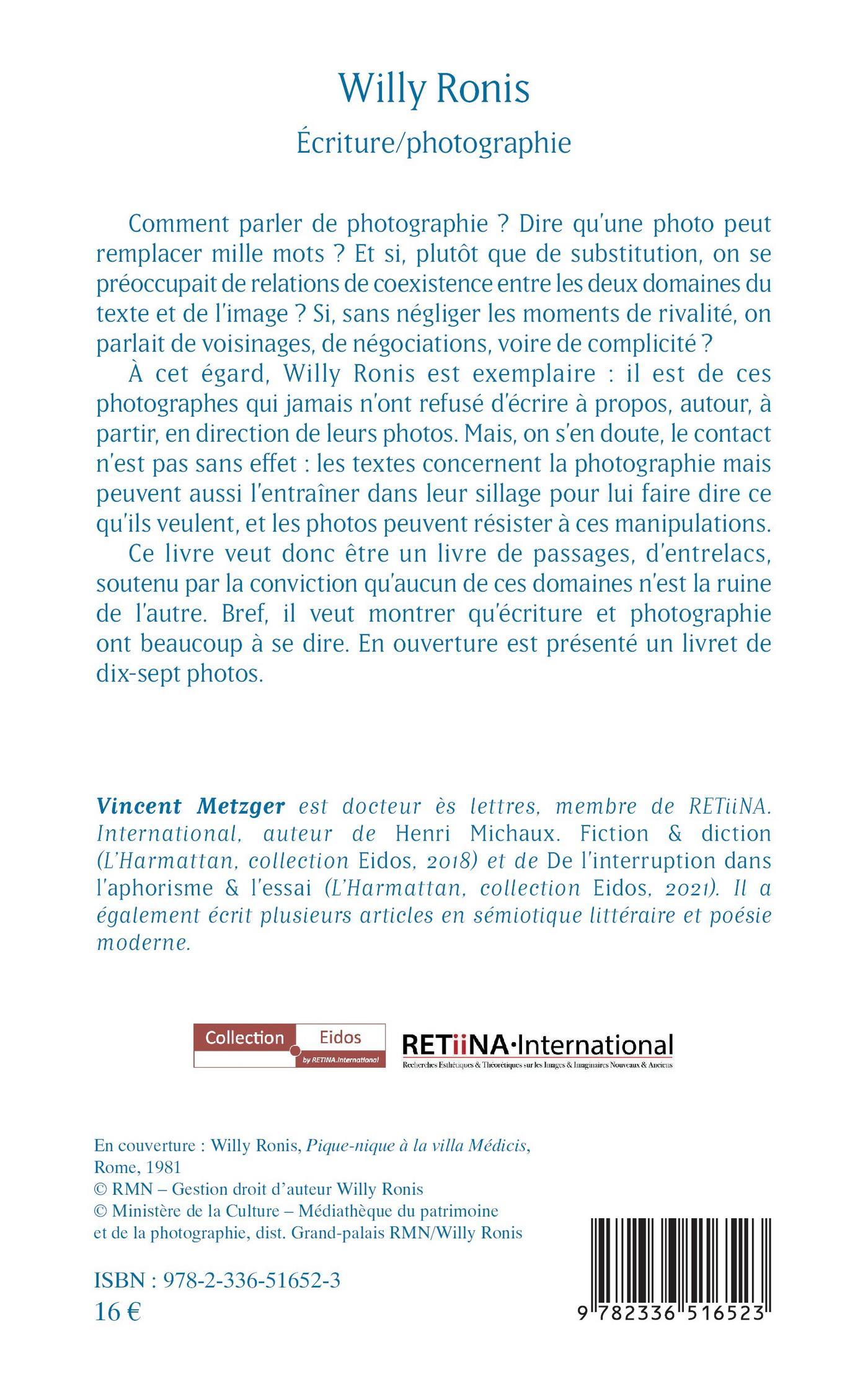 Ce livre veut donc être un livre de passages, d’entrelacs, soutenu par la conviction qu’aucun de ces domaines n’est la ruine de l’autre. Bref, il veut montrer qu’écriture et photographie ont beaucoup à se dire. En ouverture est présenté un livret de dix-sept photos.