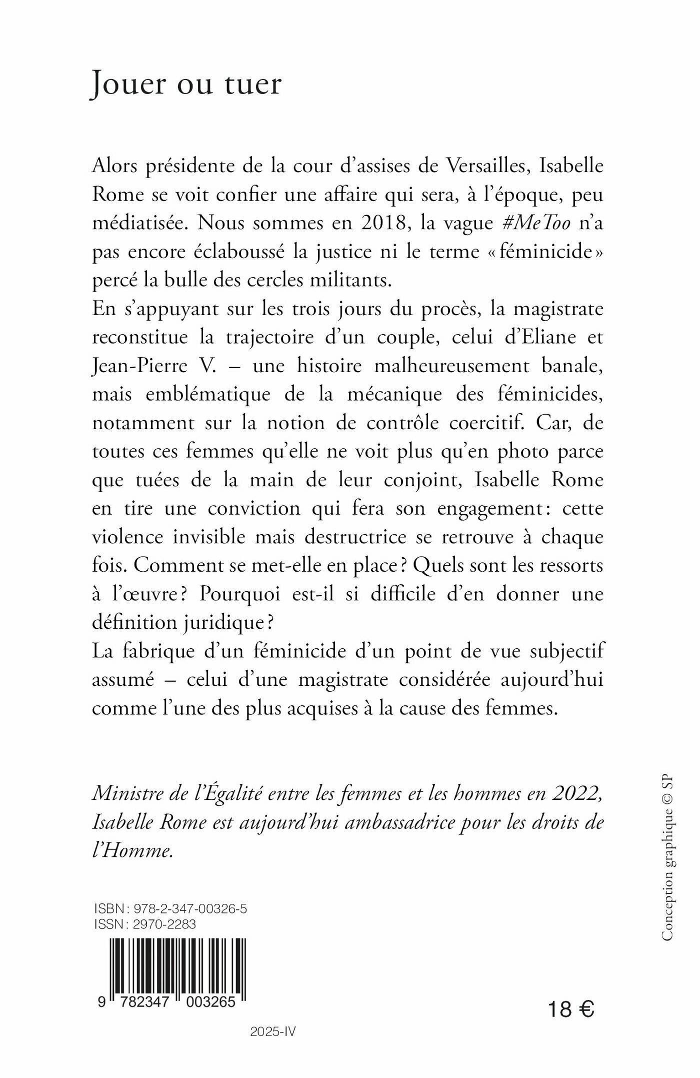 En s’appuyant sur les trois jours du procès, la magistrate reconstitue la trajectoire d’un couple, celui d’Éliane et Jean-Pierre V. – une histoire malheureusement banale, mais emblématique de la mécanique des féminicides, notamment sur la notion de contrôle coercitif. Car, de toutes ces femmes qu’elle ne voit plus qu’en photo parce que tuées de la main de leur conjoint, Isabelle Rome en tire une conviction qui fera son engagement : cette violence invisible mais destructrice se retrouve à chaque fois. Comment se met-elle en place ? Quels sont les ressorts à l’oeuvre ? Pourquoi est-il si difficile d’en donner une définition juridique ?