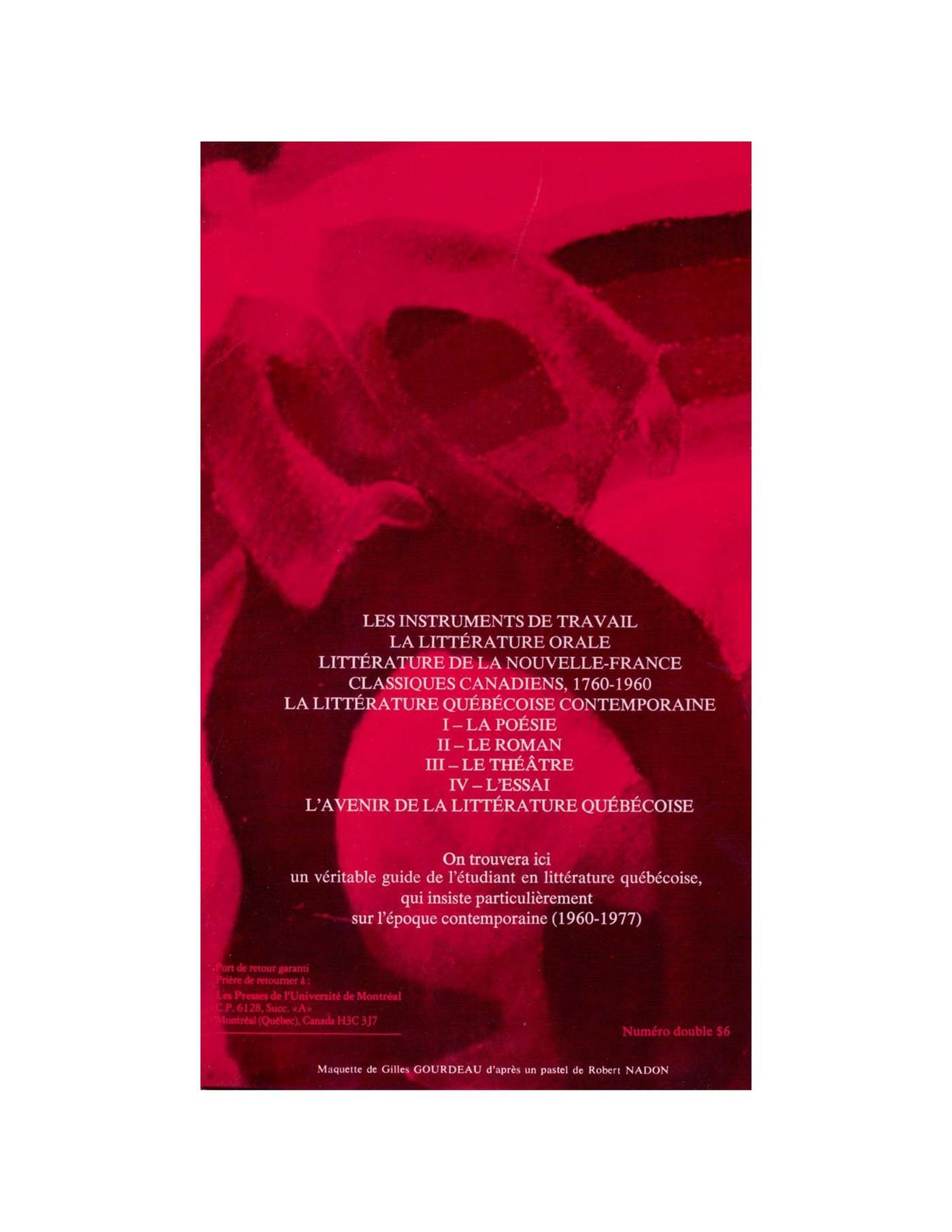 Laurent Mailhot, Lise Gauvin, Jacques Dubois, William Weiss, Paul Bouissac, Gilbert David, Normand Leroux, Gilles Girard, Pierre Berthiaume, Jean Cléo Godin, Pierre Gobin, Raymond Cloutier, Claire Ranger
