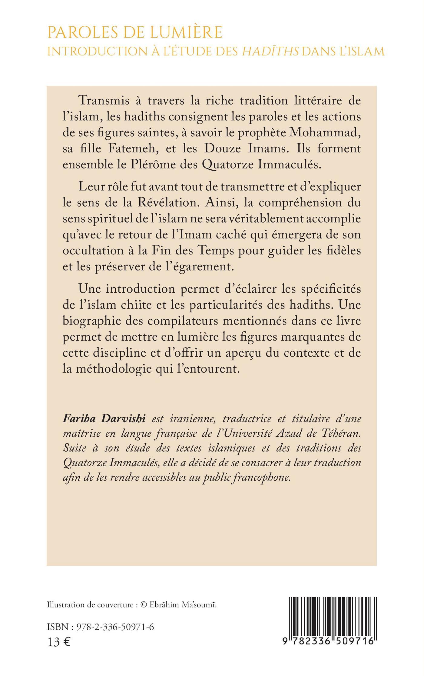 Une introduction permet d’éclairer les spécificités de l’islam chiite et les particularités des hadiths. Une biographie des compilateurs mentionnés dans ce livre permet de mettre en lumière les figures marquantes de cette discipline et d’offrir un aperçu du contexte et de la méthodologie qui l’entourent.