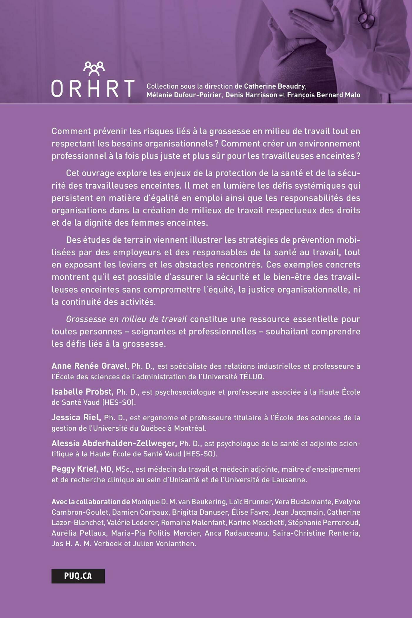 De la législation aux interventions spécifiques, en passant par des stratégies de prévention, ce livre propose un cadre pour accompagner efficacement les travailleuses enceintes tout en respectant les besoins organisationnels.